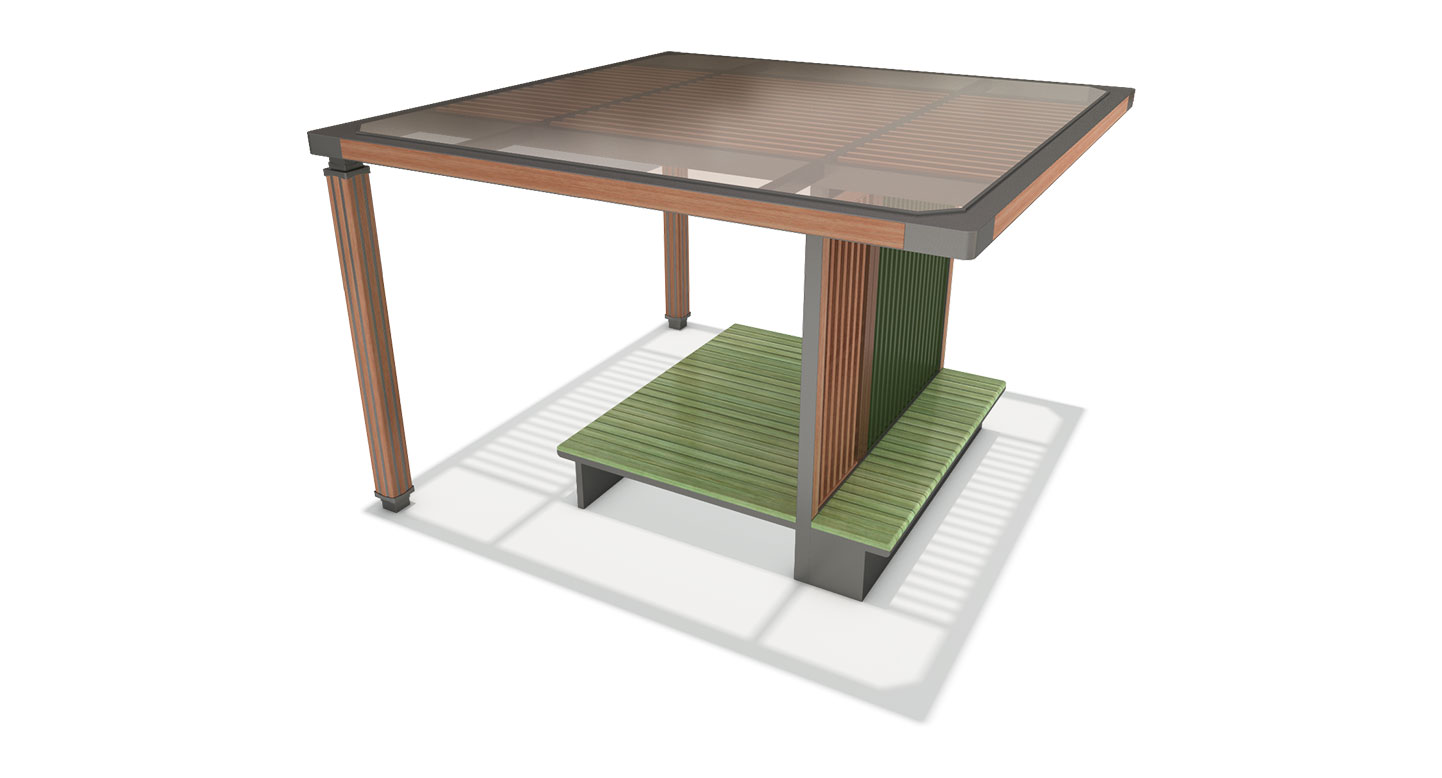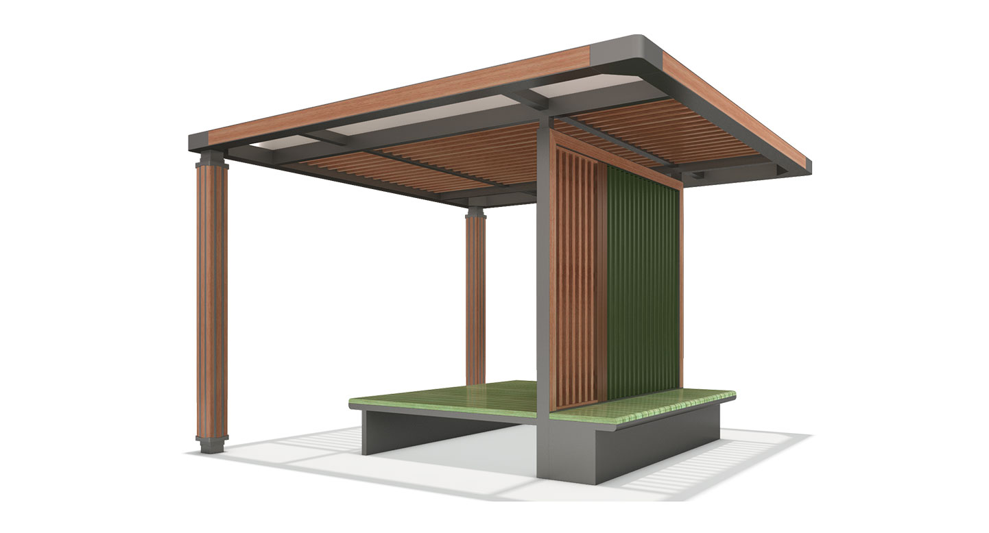 그린 라운지 플러스(GREEN LOUNGE PLUS)|DAUM-P-1143 제품목록으로 바로가기 자료 및 바로가기 나라장터 바로연결 도면 다운로드 시공사진 보러가기 기타 중후한 차콜 프레임과 그린 루버 패널이 조화를 이루어 도심 속 자연스러운 쉼터를 연출합니다. 루프와 연결된 파티션 월을 중심으로 평상과 벤치를 분리 설계하여, 한 공간에서 다양한 방식의 프리미엄 휴식을 제공합니다. 제품명 그린 라운지 플러스(GREEN LOUNGE PLUS)|DAUM-P-1143 물품식별번호 25018048 규격 4,000 X 4,000 X 2,600(H) 재질 stl, galvanized, hard wood, polycarbonate, hpl 그린 라운지 플러스(GREEN LOUNGE PLUS)|DAUM-P-1143 물품식별번호 25018048 규격 4,000 X 4,000 X 2,600(H) 재질 stl, galvanized, hard wood, polycarbonate, hpl 기타 중후한 차콜 프레임과 그린 루버 패널이 조화를 이루어 도심 속 자연스러운 쉼터를 연출합니다. 루프와 연결된 파티션 월을 중심으로 평상과 벤치를 분리 설계하여, 한 공간에서 다양한 방식의 프리미엄 휴식을 제공합니다. 자료 및 바로가기 나라장터 바로연결 도면 다운로드 시공사진 보러가기