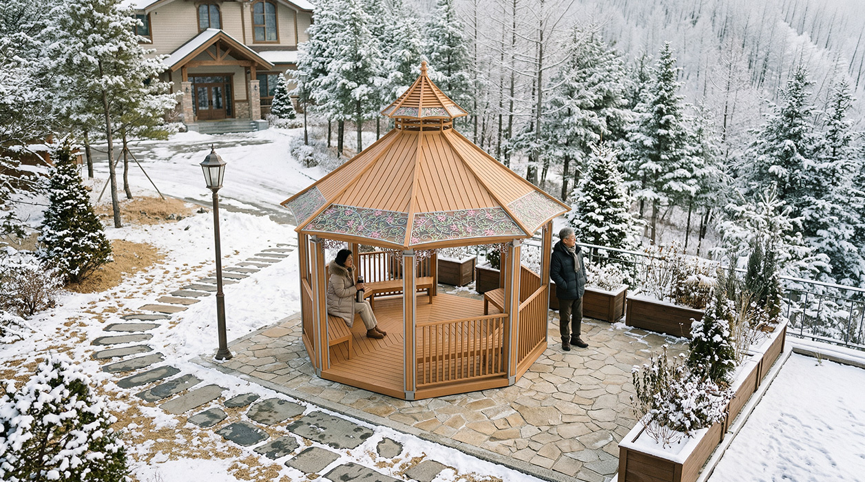 팀버 플로럴 옥타곤(TIMBER FLORAL OCTAGON)|DAUM-P-146A 제품목록으로 바로가기 자료 및 바로가기 나라장터 바로연결 도면 다운로드 시공사진 보러가기 기타 팔각 원뿔형 루프의 하단에 화려한 꽃 넝쿨 문양의 스크린을 둘러 예술적인 감성을 극대화했습니다. 루프 꼭대기의 조형 장식과 내부의 팔각 월 벤치가 어우러져 정원 한복판에서 한 폭의 그림 같은 경관을 완성합니다. 제품명 팀버 플로럴 옥타곤(TIMBER FLORAL OCTAGON)|DAUM-P-146A 물품식별번호 25024859 규격 5,241 X 5,241 X 5,045(H) 재질 stl, hard wood, al-casting, polycarbonate 팀버 플로럴 옥타곤(TIMBER FLORAL OCTAGON)|DAUM-P-146A 물품식별번호 25024859 규격 5,241 X 5,241 X 5,045(H) 재질 stl, hard wood, al-casting, polycarbonate 기타 팔각 원뿔형 루프의 하단에 화려한 꽃 넝쿨 문양의 스크린을 둘러 예술적인 감성을 극대화했습니다. 루프 꼭대기의 조형 장식과 내부의 팔각 월 벤치가 어우러져 정원 한복판에서 한 폭의 그림 같은 경관을 완성합니다. 자료 및 바로가기 나라장터 바로연결 도면 다운로드 시공사진 보러가기
