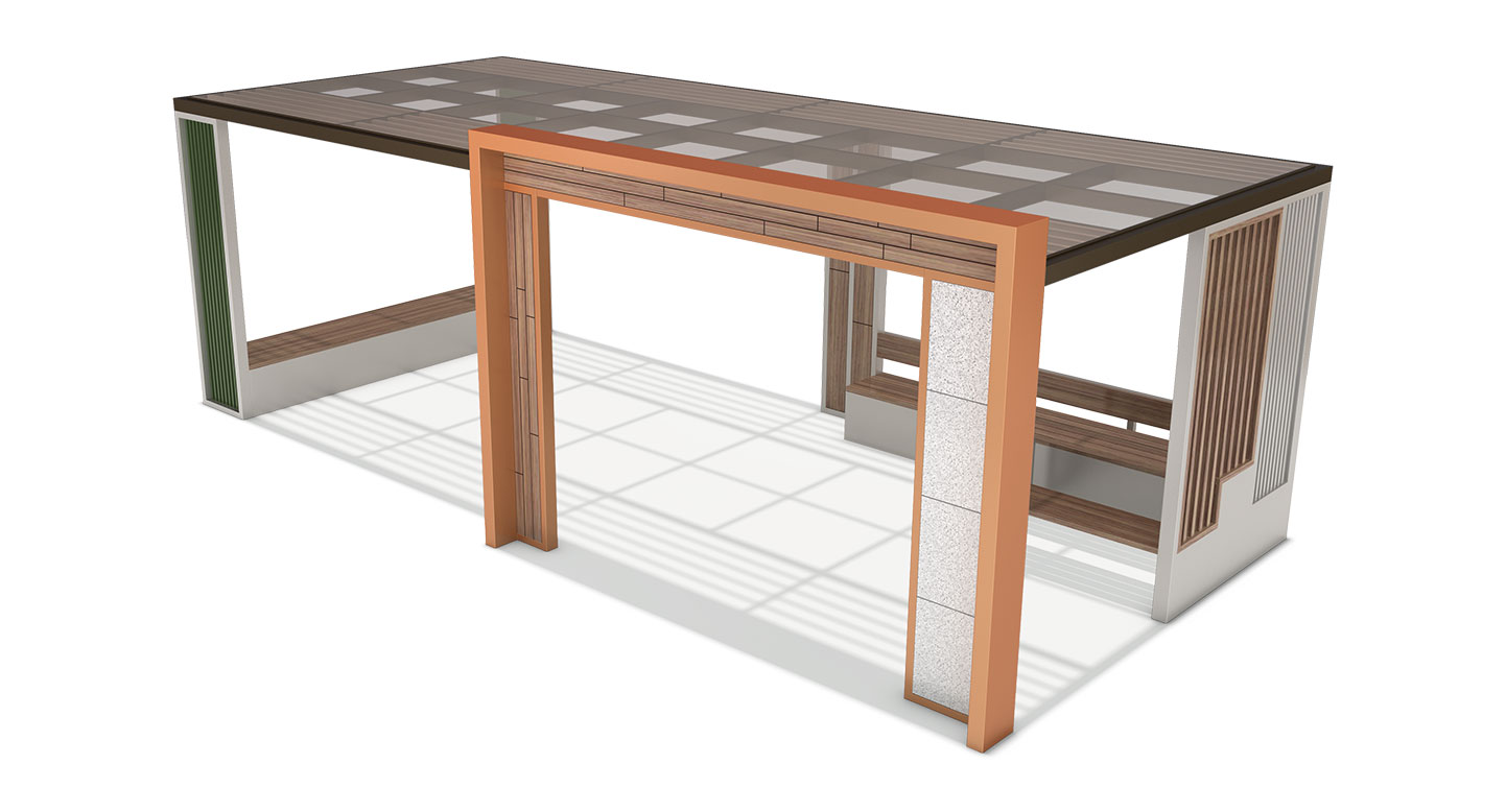 오렌지 스톤 테이블 홀 프라임 (ORANGE STONE TABLE HALL PRIME)|DAUMP-1739 제품목록으로 바로가기 자료 및 바로가기 나라장터 바로연결 도면 다운로드 시공사진 보러가기 기타 선명한 오렌지 프레임과 석재 패턴 포스트가 어우러져 현대적이고 웅장한 경관을 선사합니다. 루프 아래 독립된 테이블 세트와 긴 월 벤치를 조화롭게 배치하여, 단지 내 주요 광장에서 다수의 입주민이 함께 소통할 수 있는 프리미엄 복합 라운지를 제공합니다. 제품명 오렌지 스톤 테이블 홀 프라임 (ORANGE STONE TABLE HALL PRIME)|DAUMP-1739 물품식별번호 25530491 규격 8,000 X 3,800 X 2,850(H) 재질 stl, galvanized, hard wood, polycarbonate 오렌지 스톤 테이블 홀 프라임 (ORANGE STONE TABLE HALL PRIME)|DAUMP-1739 물품식별번호 25530491 규격 8,000 X 3,800 X 2,850(H) 재질 stl, galvanized, hard wood, polycarbonate 기타 선명한 오렌지 프레임과 석재 패턴 포스트가 어우러져 현대적이고 웅장한 경관을 선사합니다. 루프 아래 독립된 테이블 세트와 긴 월 벤치를 조화롭게 배치하여, 단지 내 주요 광장에서 다수의 입주민이 함께 소통할 수 있는 프리미엄 복합 라운지를 제공합니다. 자료 및 바로가기 나라장터 바로연결 도면 다운로드 시공사진 보러가기