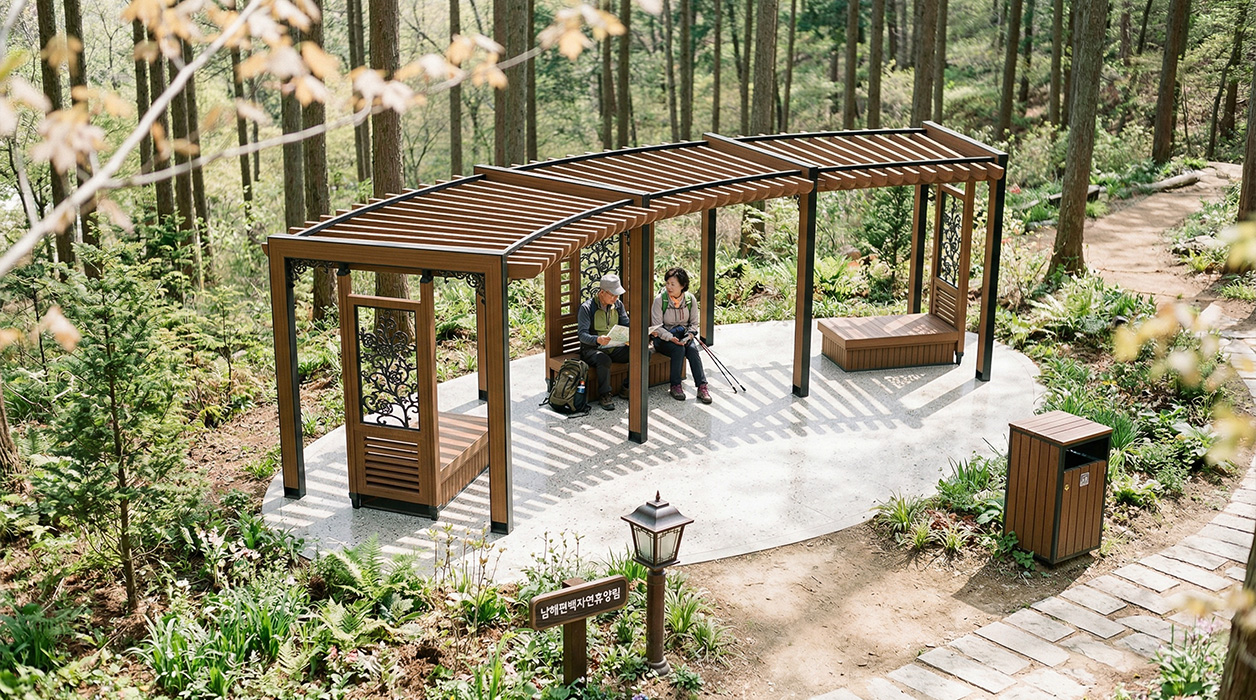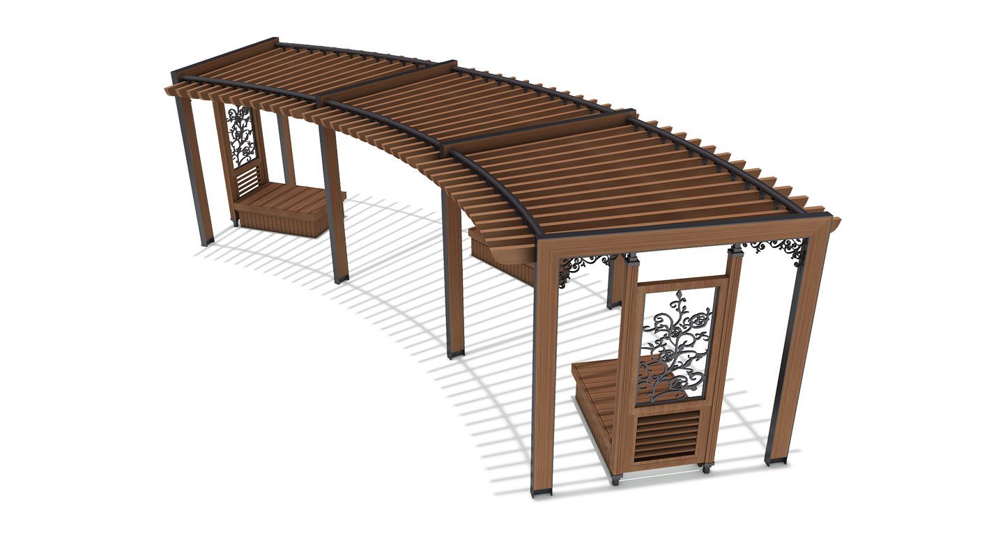 팀버 플라워 스크린 아치(TIMBER FLOWER SCREEN ARCH)|DAUM-P-410 제품목록으로 바로가기 자료 및 바로가기 나라장터 바로연결 도면 다운로드 시공사진 보러가기 기타 유려한 곡선형 목재 루프와 섬세한 꽃 문양 타공 스크린이 어우러져 로맨틱하고 우아한 분위기를 연출합니다. 루프 라인을 따라 배치된 월 벤치와 세밀한 장식 요소들이 단지 내 산책로에 감성적인 휴게 포인트를 완성합니다. 제품명 팀버 플라워 스크린 아치(TIMBER FLOWER SCREEN ARCH)|DAUM-P-410 물품식별번호 23144525 규격 10,548 X 4,262 X 2,700(H) 재질 stl, hard wood, galvanized, polycarbonate 팀버 플라워 스크린 아치(TIMBER FLOWER SCREEN ARCH)|DAUM-P-410 물품식별번호 23144525 규격 10,548 X 4,262 X 2,700(H) 재질 stl, hard wood, galvanized, polycarbonate 기타 유려한 곡선형 목재 루프와 섬세한 꽃 문양 타공 스크린이 어우러져 로맨틱하고 우아한 분위기를 연출합니다. 루프 라인을 따라 배치된 월 벤치와 세밀한 장식 요소들이 단지 내 산책로에 감성적인 휴게 포인트를 완성합니다. 자료 및 바로가기 나라장터 바로연결 도면 다운로드 시공사진 보러가기