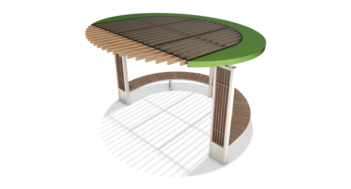 그린 리프 셰이드 라운드(GREEN LEAF SHADE ROUND)|DAUM-P-324 제품목록으로 바로가기 자료 및 바로가기 나라장터 바로연결 도면 다운로드 시공사진 보러가기 기타 나뭇잎을 연상시키는 비대칭 그린 포인트 루프와 살대형 목재 루버가 어우러져 자연 친화적인 분위기를 연출합니다. 루프 라인을 따라 배치된 와이드한 곡선 벤치를 통해 숲속 정원에 머무는 듯한 편안하고 안락한 휴식을 제공합니다. 제품명 그린 리프 셰이드 라운드(GREEN LEAF SHADE ROUND)|DAUM-P-324 물품식별번호 25019798 규격 3,800 X 3,792 X 2,530(H) 재질 stl, hard wood, galvanized, polycarbonate 그린 리프 셰이드 라운드(GREEN LEAF SHADE ROUND)|DAUM-P-324 물품식별번호 25019798 규격 3,800 X 3,792 X 2,530(H) 재질 stl, hard wood, galvanized, polycarbonate 기타 나뭇잎을 연상시키는 비대칭 그린 포인트 루프와 살대형 목재 루버가 어우러져 자연 친화적인 분위기를 연출합니다. 루프 라인을 따라 배치된 와이드한 곡선 벤치를 통해 숲속 정원에 머무는 듯한 편안하고 안락한 휴식을 제공합니다. 자료 및 바로가기 나라장터 바로연결 도면 다운로드 시공사진 보러가기