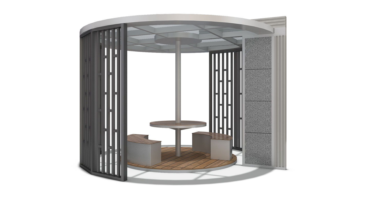 모던 링 테이블 라운드(MODERN RING TABLE ROUND)|DAUM-P-317 제품목록으로 바로가기 자료 및 바로가기 나라장터 바로연결 도면 다운로드 시공사진 보러가기 기타 원형 테이블과 벤치를 통합한 일체형 구조가 화이트 링 루프 아래 콤팩트하게 배치되었습니다. 세련된 석재 패턴 벽체와 수직 루버가 시선을 적절히 차단하여 단지 내 산책로에서 아늑한 소모임 공간을 제공합니다. 제품명 모던 링 테이블 라운드(MODERN RING TABLE ROUND)|DAUM-P-317 물품식별번호 25018211 규격 4,200 X 4,000 X 2,800(H) 재질 stl, hard wood, galvanized, polycarbonate 모던 링 테이블 라운드(MODERN RING TABLE ROUND)|DAUM-P-317 물품식별번호 25018211 규격 4,200 X 4,000 X 2,800(H) 재질 stl, hard wood, galvanized, polycarbonate 기타 원형 테이블과 벤치를 통합한 일체형 구조가 화이트 링 루프 아래 콤팩트하게 배치되었습니다. 세련된 석재 패턴 벽체와 수직 루버가 시선을 적절히 차단하여 단지 내 산책로에서 아늑한 소모임 공간을 제공합니다. 자료 및 바로가기 나라장터 바로연결 도면 다운로드 시공사진 보러가기