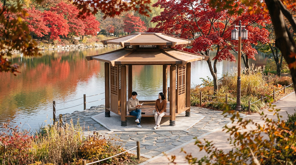 팀버 로열 더블 루프(TIMBER ROYAL DOUBLE ROOF)|DAUM-P-141A 제품목록으로 바로가기 자료 및 바로가기 나라장터 바로연결 도면 다운로드 시공사진 보러가기 기타 웅장한 2단 겹처마 구조와 직선미가 강조된 목재 골조가 왕실 파빌리온 같은 위엄을 자아냅니다. 루프 상단의 투명 개구부와 하부의 넓은 평상 데크를 통해 채광과 개방감을 동시에 만족시키는 하이엔드 목제 티하우스입니다. 제품명 팀버 로열 더블 루프(TIMBER ROYAL DOUBLE ROOF)|DAUM-P-141A 물품식별번호 25025062 규격 6,030 X 5,244 X 3,820(H) 재질 stl, hard wood, polycarbonate, 화강석 팀버 로열 더블 루프(TIMBER ROYAL DOUBLE ROOF)|DAUM-P-141A 물품식별번호 25025062 규격 6,030 X 5,244 X 3,820(H) 재질 stl, hard wood, polycarbonate, 화강석 기타 웅장한 2단 겹처마 구조와 직선미가 강조된 목재 골조가 왕실 파빌리온 같은 위엄을 자아냅니다. 루프 상단의 투명 개구부와 하부의 넓은 평상 데크를 통해 채광과 개방감을 동시에 만족시키는 하이엔드 목제 티하우스입니다. 자료 및 바로가기 나라장터 바로연결 도면 다운로드 시공사진 보러가기