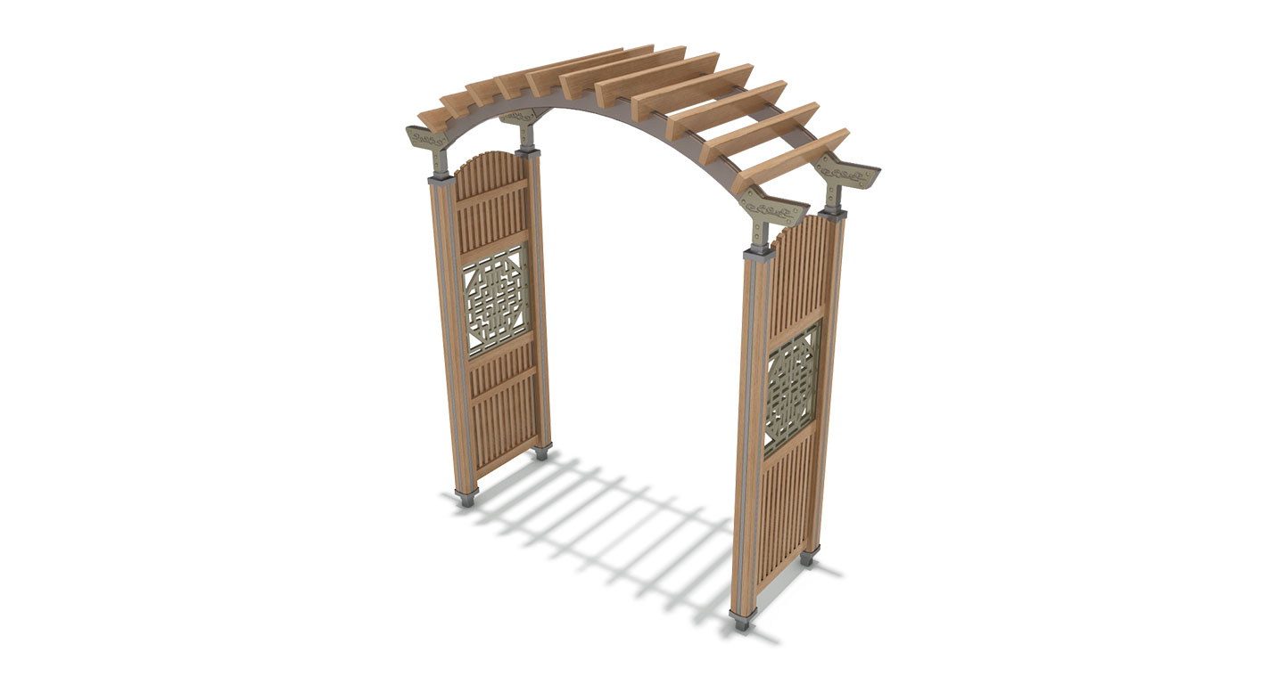 오리엔탈 아치 게이트(ORIENTAL ARCH GATE)|DAUM-G-104 제품목록으로 바로가기 자료 및 바로가기 나라장터 바로연결 도면 다운로드 시공사진 보러가기 기타 전통적인 격자 문양과 곡선형 서까래 지붕이 어우러진 한국적인 미(美)의 게이트입니다. 목재의 따뜻한 질감과 금속 장식이 조화를 이루어, 공원이나 산책로의 입구를 품격 있게 장식합니다. 제품명 오리엔탈 아치 게이트(ORIENTAL ARCH GATE)|DAUM-G-104 물품식별번호 23143067 규격 2,400 X 1,000 X, 2,700(H) 재질 stl, hard wood 오리엔탈 아치 게이트(ORIENTAL ARCH GATE)|DAUM-G-104 물품식별번호 23143067 규격 2,400 X 1,000 X, 2,700(H) 재질 stl, hard wood 기타 전통적인 격자 문양과 곡선형 서까래 지붕이 어우러진 한국적인 미(美)의 게이트입니다. 목재의 따뜻한 질감과 금속 장식이 조화를 이루어, 공원이나 산책로의 입구를 품격 있게 장식합니다. 자료 및 바로가기 나라장터 바로연결 도면 다운로드 시공사진 보러가기