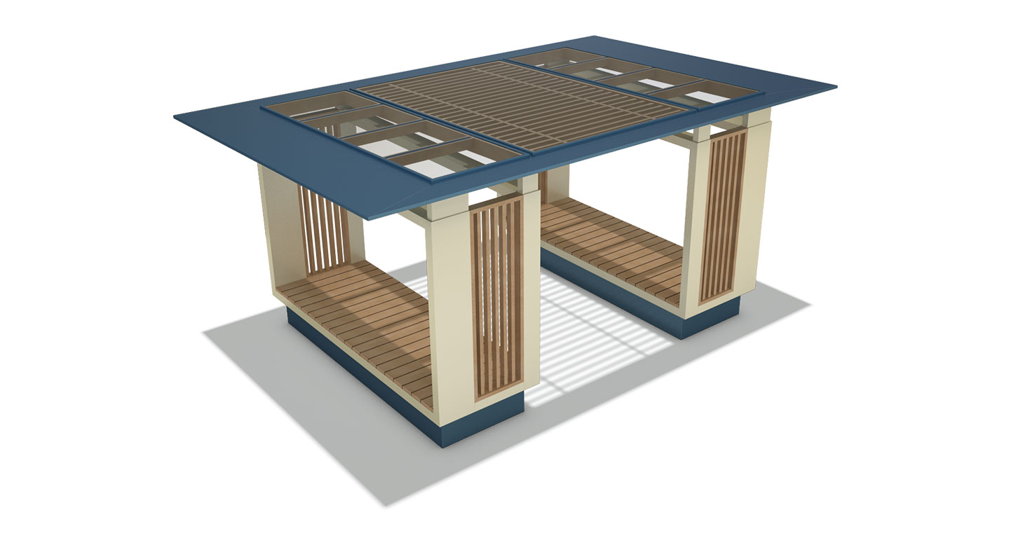 스카이 플로팅 홀 프라임 (SKY FLOATING HALL PRIME)|DAUM-P-1196 제품목록으로 바로가기 자료 및 바로가기 나라장터 바로연결 도면 다운로드 시공사진 보러가기 기타 청량한 블루 컬러의 루프와 베이지 톤의 묵직한 포스트가 결합되어 안정적이면서도 세련된 분위기를 연출합니다. 루프와 통합된 플로팅 스타일의 평상형 데크를 통해 지면으로부터 띄워진 쾌적한 휴식 공간을 제공합니다. 제품명 스카이 플로팅 홀 프라임 (SKY FLOATING HALL PRIME)|DAUM-P-1196 물품식별번호 25018131 규격 6,000 X 4,000 X 2,750(H) 재질 stl, galvanized, hard wood, polycarbonate 스카이 플로팅 홀 프라임 (SKY FLOATING HALL PRIME)|DAUM-P-1196 물품식별번호 25018131 규격 6,000 X 4,000 X 2,750(H) 재질 stl, galvanized, hard wood, polycarbonate 기타 청량한 블루 컬러의 루프와 베이지 톤의 묵직한 포스트가 결합되어 안정적이면서도 세련된 분위기를 연출합니다. 루프와 통합된 플로팅 스타일의 평상형 데크를 통해 지면으로부터 띄워진 쾌적한 휴식 공간을 제공합니다. 자료 및 바로가기 나라장터 바로연결 도면 다운로드 시공사진 보러가기