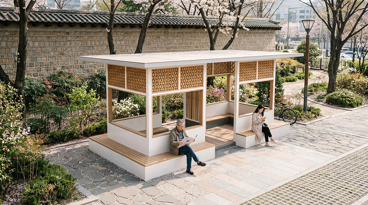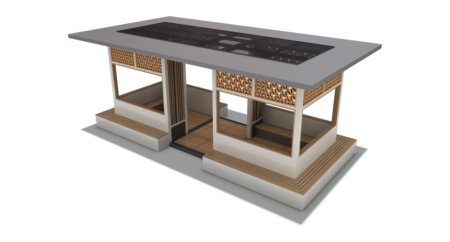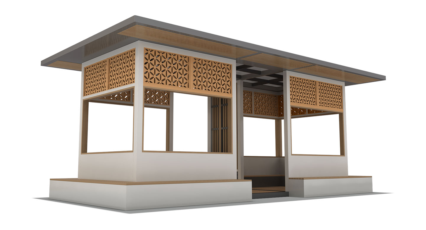 오리엔탈 패턴 데크 홀 프라임 (ORIENTAL PATTERN DECK HALL PRIME)|DAUM-P-1718 제품목록으로 바로가기 자료 및 바로가기 나라장터 바로연결 도면 다운로드 시공사진 보러가기 기타 전통 문창살을 재해석한 정교한 목재 패턴과 모던한 화이트 매스가 어우러져 단아하고 품격 있는 경관을 연출합니다. 내부 평상형 데크와 외부 벤치를 입체적으로 연결하여, 현대적인 단지 내에서도 고전적인 여유를 만끽할 수 있는 프리미엄 휴게 공간을 제공합니다. 제품명 오리엔탈 패턴 데크 홀 프라임 (ORIENTAL PATTERN DECK HALL PRIME)|DAUM-P-1718 물품식별번호 25024031 규격 7,000 X 3,800 X 2,800(H) 재질 stl, galvanized, hard wood, polycarbonate 오리엔탈 패턴 데크 홀 프라임 (ORIENTAL PATTERN DECK HALL PRIME)|DAUM-P-1718 물품식별번호 25024031 규격 7,000 X 3,800 X 2,800(H) 재질 stl, galvanized, hard wood, polycarbonate 기타 전통 문창살을 재해석한 정교한 목재 패턴과 모던한 화이트 매스가 어우러져 단아하고 품격 있는 경관을 연출합니다. 내부 평상형 데크와 외부 벤치를 입체적으로 연결하여, 현대적인 단지 내에서도 고전적인 여유를 만끽할 수 있는 프리미엄 휴게 공간을 제공합니다. 자료 및 바로가기 나라장터 바로연결 도면 다운로드 시공사진 보러가기