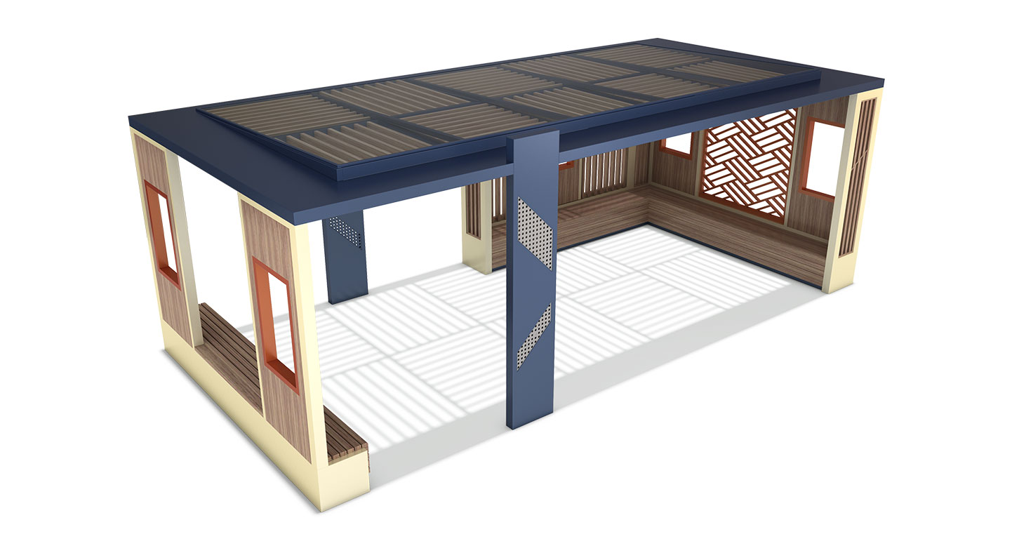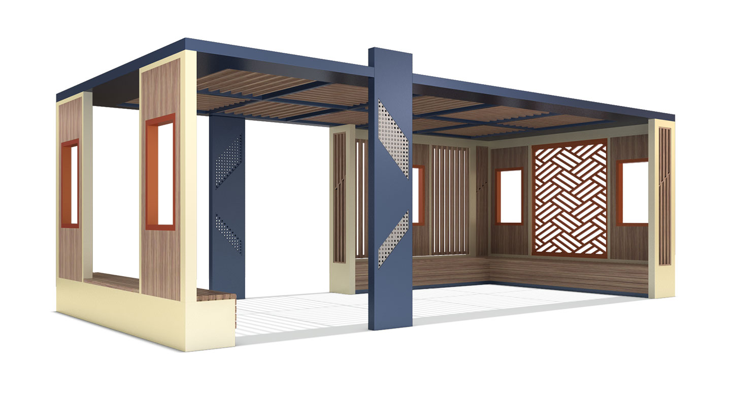 모던트래디션 홀 프라임(MODERN-TRADITION HALL PRIME)|DAUM-P-794 제품목록으로 바로가기 자료 및 바로가기 나라장터 바로연결 도면 다운로드 시공사진 보러가기 기타 깊이 있는 네이비 블루 프레임에 오렌지 컬러의 전통 격자 창호가 더해져 독특한 조형미를 뽐냅니다. 현대적인 구조 속에 한국적인 디테일을 위트 있게 녹여낸 뉴트로(New-Tro) 감성의 커뮤니티 공간입니다. 제품명 모던트래디션 홀 프라임(MODERN-TRADITION HALL PRIME)|DAUM-P-794 물품식별번호 25022677 규격 7,500 X 3,600 X 2,700(H) 재질 stl, galvanized, hard wood, polycarbonate 모던트래디션 홀 프라임(MODERN-TRADITION HALL PRIME)|DAUM-P-794 물품식별번호 25022677 규격 7,500 X 3,600 X 2,700(H) 재질 stl, galvanized, hard wood, polycarbonate 기타 깊이 있는 네이비 블루 프레임에 오렌지 컬러의 전통 격자 창호가 더해져 독특한 조형미를 뽐냅니다. 현대적인 구조 속에 한국적인 디테일을 위트 있게 녹여낸 뉴트로(New-Tro) 감성의 커뮤니티 공간입니다. 자료 및 바로가기 나라장터 바로연결 도면 다운로드 시공사진 보러가기