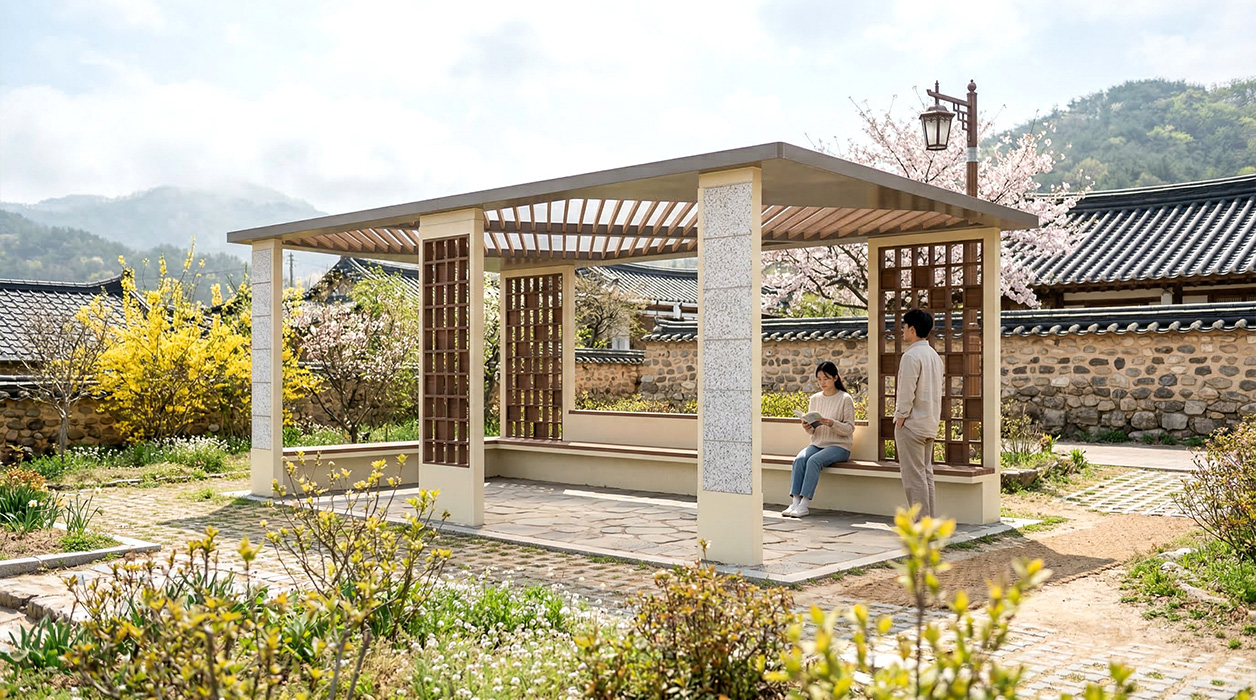 스톤 메쉬 홀 프라임(STONE MESH HALL PRIME)|DAUM-P-795 제품목록으로 바로가기 자료 및 바로가기 나라장터 바로연결 도면 다운로드 시공사진 보러가기 기타 석재 패턴의 포스트와 격자형 우드 스크린의 조화로 웅장함과 아늑함을 동시에 구현했습니다. 와이드 루프 아래 통합 설계된 대면형 벤치를 통해 단지 내 품격 있는 대규모 복합 휴게 공간을 제공합니다. 제품명 스톤 메쉬 홀 프라임(STONE MESH HALL PRIME)|DAUM-P-795 물품식별번호 25022679 규격 7,000 X 3,600 X 2,600(H) 재질 stl, galvanized, hard wood, polycarbonate 스톤 메쉬 홀 프라임(STONE MESH HALL PRIME)|DAUM-P-795 물품식별번호 25022679 규격 7,000 X 3,600 X 2,600(H) 재질 stl, galvanized, hard wood, polycarbonate 기타 석재 패턴의 포스트와 격자형 우드 스크린의 조화로 웅장함과 아늑함을 동시에 구현했습니다. 와이드 루프 아래 통합 설계된 대면형 벤치를 통해 단지 내 품격 있는 대규모 복합 휴게 공간을 제공합니다. 자료 및 바로가기 나라장터 바로연결 도면 다운로드 시공사진 보러가기