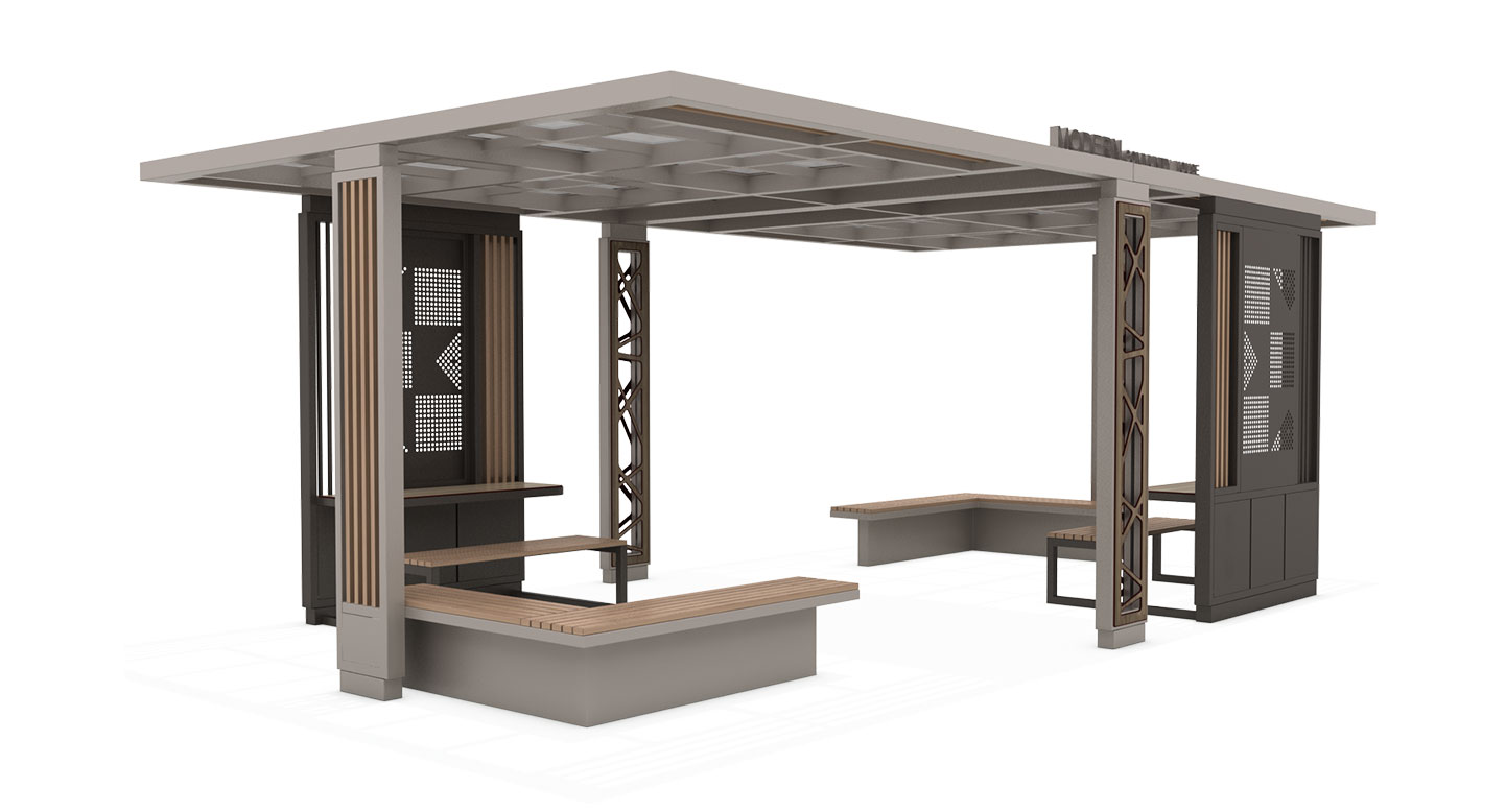 지오래티스 홀 프라임(GEO-LATTICE HALL PRIME)|DAUM-P-2716 제품목록으로 바로가기 자료 및 바로가기 나라장터 바로연결 도면 다운로드 시공사진 보러가기 기타 기하학적 타공 패턴의 벽체와 트러스 형태의 포인트 기둥이 조형적 미감을 선사하며, 여유로운 ‘L’자형 벤치가 더해져 현대적인 기업 사옥의 야외 광장이나 도심 공원에서 세련된 도시 감성을 연출하는 쉼터입니다. 제품명 지오래티스 홀 프라임(GEO-LATTICE HALL PRIME)|DAUM-P-2716 물품식별번호 25939116 규격 7,000 × 4,000 × 2,600(H) 재질 stl, galvanized, hard wood, polycarbonate, hpl 지오래티스 홀 프라임(GEO-LATTICE HALL PRIME)|DAUM-P-2716 물품식별번호 25939116 규격 7,000 × 4,000 × 2,600(H) 재질 stl, galvanized, hard wood, polycarbonate, hpl 기타 기하학적 타공 패턴의 벽체와 트러스 형태의 포인트 기둥이 조형적 미감을 선사하며, 여유로운 ‘L’자형 벤치가 더해져 현대적인 기업 사옥의 야외 광장이나 도심 공원에서 세련된 도시 감성을 연출하는 쉼터입니다. 자료 및 바로가기 나라장터 바로연결 도면 다운로드 시공사진 보러가기