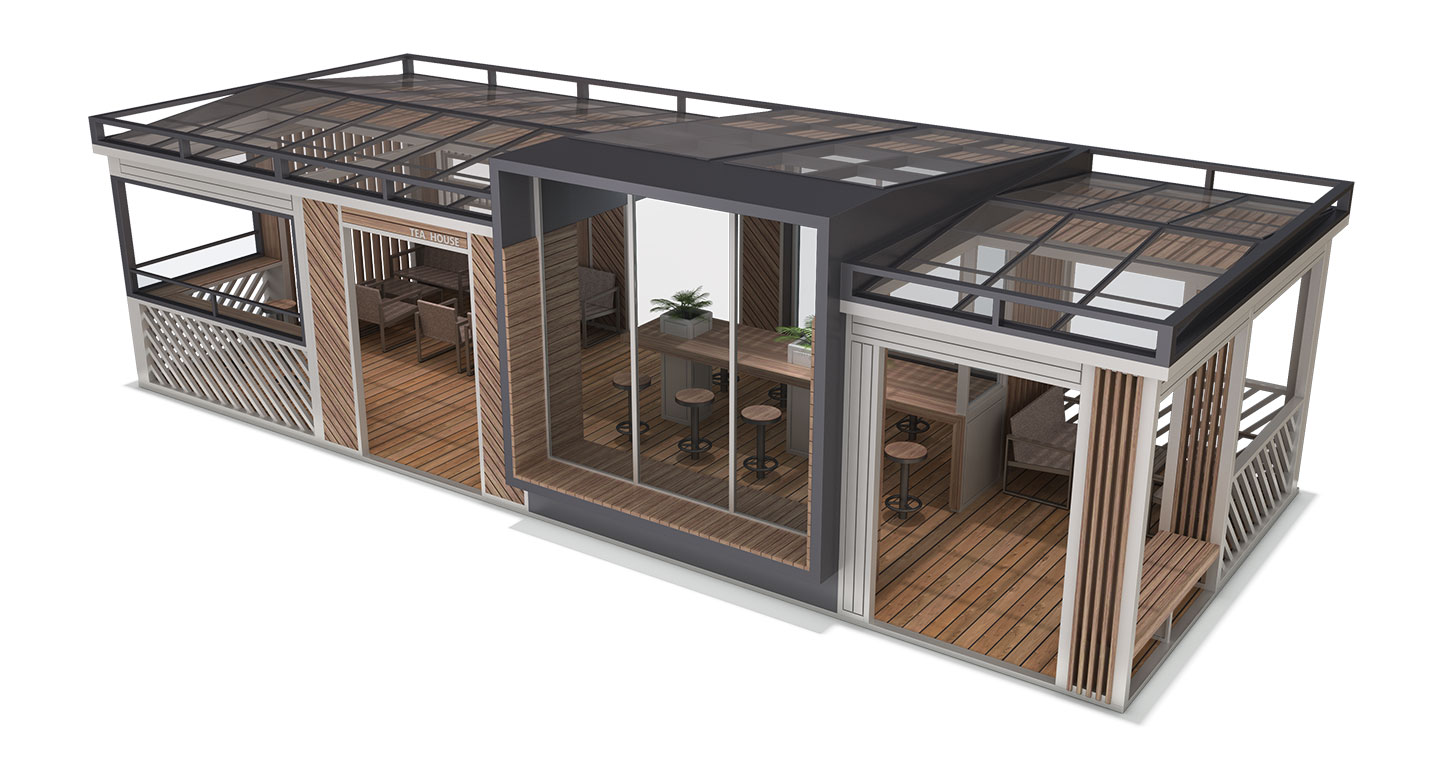 멀티 레이어 카페 라운지(MULTI-LAYER CAFE LOUNGE)|DAUM-P-766-1 제품목록으로 바로가기 자료 및 바로가기 나라장터 바로연결 도면 다운로드 시공사진 보러가기 기타 중앙의 모던한 바 테이블과 양옆으로 분리된 독립형 라운지 공간이 결합되어 다채로운 휴게 경험을 선사합니다. 투명한 루프와 따뜻한 질감의 목재 루버가 어우러져 사계절 내내 단지 내에서 차별화된 소통과 휴식을 즐길 수 있는 초대형 프리미엄 티하우스 거점을 제공합니다. 제품명 멀티 레이어 카페 라운지(MULTI-LAYER CAFE LOUNGE)|DAUM-P-766-1 물품식별번호 24557331 규격 12,000 X 5,000 X 3,550(H) 재질 _ stl, galvanized, hard wood, polycarbonate, hpl 멀티 레이어 카페 라운지(MULTI-LAYER CAFE LOUNGE)|DAUM-P-766-1 물품식별번호 24557331 규격 12,000 X 5,000 X 3,550(H) 재질 _ stl, galvanized, hard wood, polycarbonate, hpl 기타 중앙의 모던한 바 테이블과 양옆으로 분리된 독립형 라운지 공간이 결합되어 다채로운 휴게 경험을 선사합니다. 투명한 루프와 따뜻한 질감의 목재 루버가 어우러져 사계절 내내 단지 내에서 차별화된 소통과 휴식을 즐길 수 있는 초대형 프리미엄 티하우스 거점을 제공합니다. 자료 및 바로가기 나라장터 바로연결 도면 다운로드 시공사진 보러가기