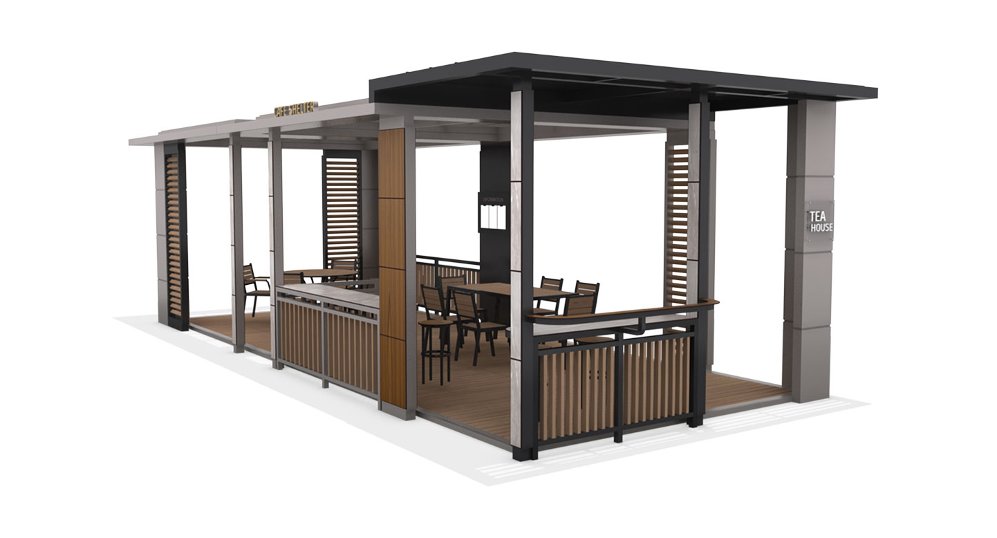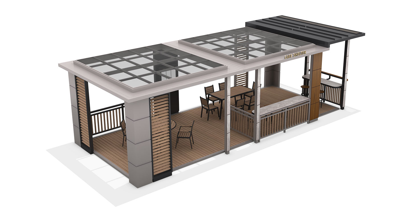 메트로 폴리탄 카페(METROPOLITAN CAFE)|DAUM-P-2746 제품목록으로 바로가기 자료 및 바로가기 나라장터 바로연결 도면 다운로드 시공사진 보러가기 기타 도심 속 고급 카페를 그대로 옮겨 놓은 듯한 세련된 직선미가 돋보입니다. 효율적인 공간 구성과 모던한 루버 디자인이 어우러져, 커피 한 잔의 여유와 함께 비즈니스 미팅이나 독서 등 다양한 활동이 가능한 스마트 티하우스입니다. 제품명 메트로 폴리탄 카페(METROPOLITAN CAFE)|DAUM-P-2746 물품식별번호 25939142 규격 10,000 × 4,200 × 3,000(H) 재질 stl, galvanized, hard wood, polycarbonate, hpl 메트로 폴리탄 카페(METROPOLITAN CAFE)|DAUM-P-2746 물품식별번호 25939142 규격 10,000 × 4,200 × 3,000(H) 재질 stl, galvanized, hard wood, polycarbonate, hpl 기타 도심 속 고급 카페를 그대로 옮겨 놓은 듯한 세련된 직선미가 돋보입니다. 효율적인 공간 구성과 모던한 루버 디자인이 어우러져, 커피 한 잔의 여유와 함께 비즈니스 미팅이나 독서 등 다양한 활동이 가능한 스마트 티하우스입니다. 자료 및 바로가기 나라장터 바로연결 도면 다운로드 시공사진 보러가기