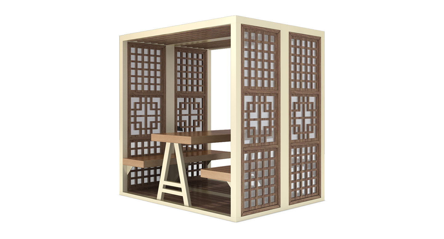 전통 창호 핏(TRADITIONAL-WINDOW FIT)|DAUM-P-441 제품목록으로 바로가기 자료 및 바로가기 나라장터 바로연결 도면 다운로드 시공사진 보러가기 기타 전통 창호의 격자 문양을 현대적인 사각 부스 안에 정갈하게 담았습니다. 한옥의 단아함과 모던한 공간 활용도가 만나 안락한 휴게 공간을 제공합니다. 제품명 전통 창호 핏(TRADITIONAL-WINDOW FIT)|DAUM-P-441 물품식별번호 25019811 규격 2,150 X 1,600 X 2,120(H) 재질 stl, hard wood, polycarbonate 전통 창호 핏(TRADITIONAL-WINDOW FIT)|DAUM-P-441 물품식별번호 25019811 규격 2,150 X 1,600 X 2,120(H) 재질 stl, hard wood, polycarbonate 기타 전통 창호의 격자 문양을 현대적인 사각 부스 안에 정갈하게 담았습니다. 한옥의 단아함과 모던한 공간 활용도가 만나 안락한 휴게 공간을 제공합니다. 자료 및 바로가기 나라장터 바로연결 도면 다운로드 시공사진 보러가기