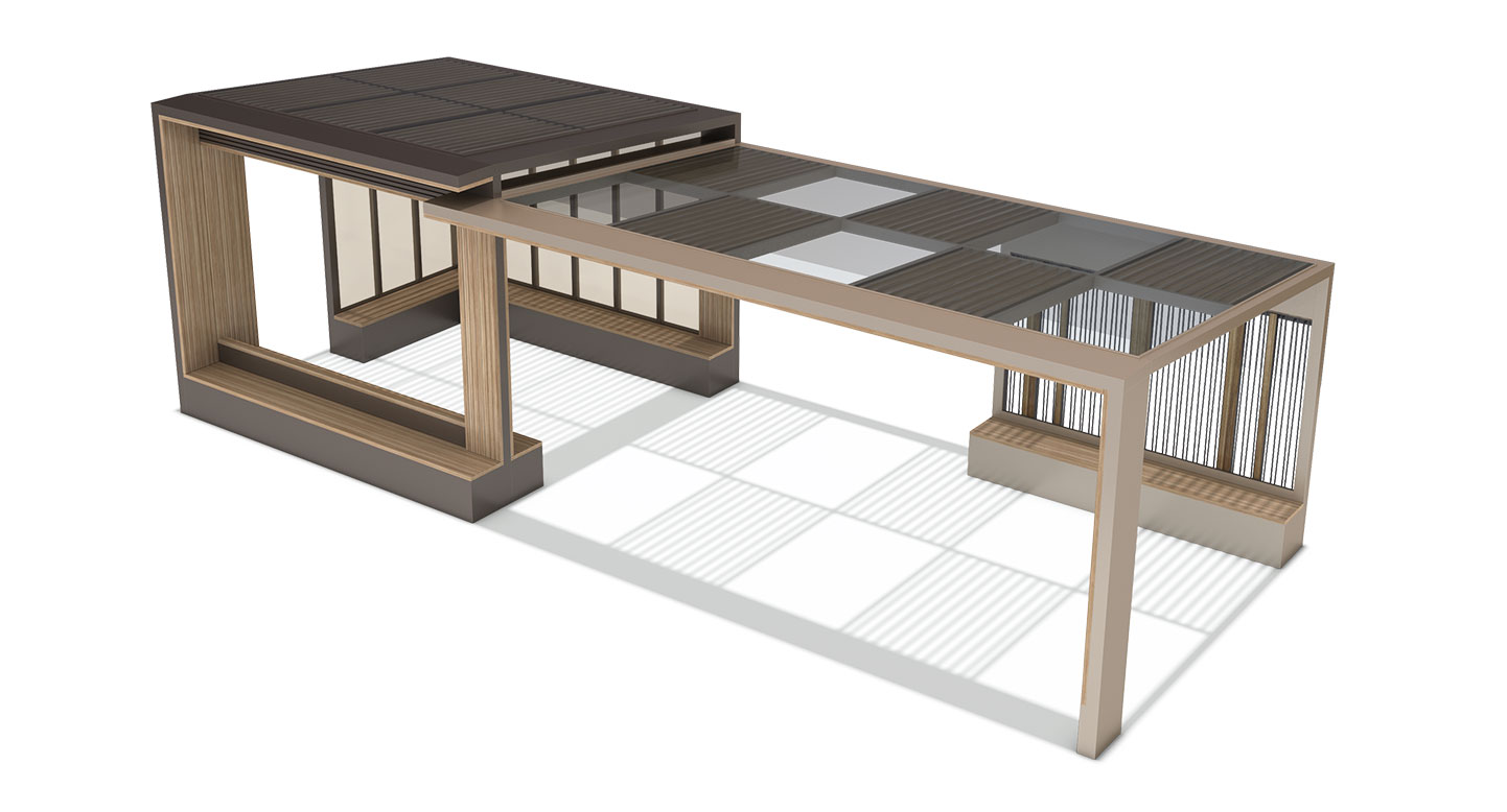 크로스오버 홀 프라임(CROSSOVER-HALL PRIME)|DAUM-P-739 제품목록으로 바로가기 자료 및 바로가기 나라장터 바로연결 도면 다운로드 시공사진 보러가기 기타 투명한 캐노피와 우드 슬랫 지붕이 결합된 하이브리드 디자인으로, 채광과 그늘의 장점을 모두 누릴 수 있습니다. 입체적인 듀얼 구조와 수직 루버가 건축적인 조형미를 선사하며, 기능성과 심미성을 완벽하게 갖춘 최고급 랜드마크 쉼터입니다. 제품명 크로스오버 홀 프라임(CROSSOVER-HALL PRIME)|DAUM-P-739 물품식별번호 23469146 규격 10,000 X 4,000 X 3,200(H) 재질 stl, galvanized, hard wood, hpl, tempered glass, pc 크로스오버 홀 프라임(CROSSOVER-HALL PRIME)|DAUM-P-739 물품식별번호 23469146 규격 10,000 X 4,000 X 3,200(H) 재질 stl, galvanized, hard wood, hpl, tempered glass, pc 기타 투명한 캐노피와 우드 슬랫 지붕이 결합된 하이브리드 디자인으로, 채광과 그늘의 장점을 모두 누릴 수 있습니다. 입체적인 듀얼 구조와 수직 루버가 건축적인 조형미를 선사하며, 기능성과 심미성을 완벽하게 갖춘 최고급 랜드마크 쉼터입니다. 자료 및 바로가기 나라장터 바로연결 도면 다운로드 시공사진 보러가기