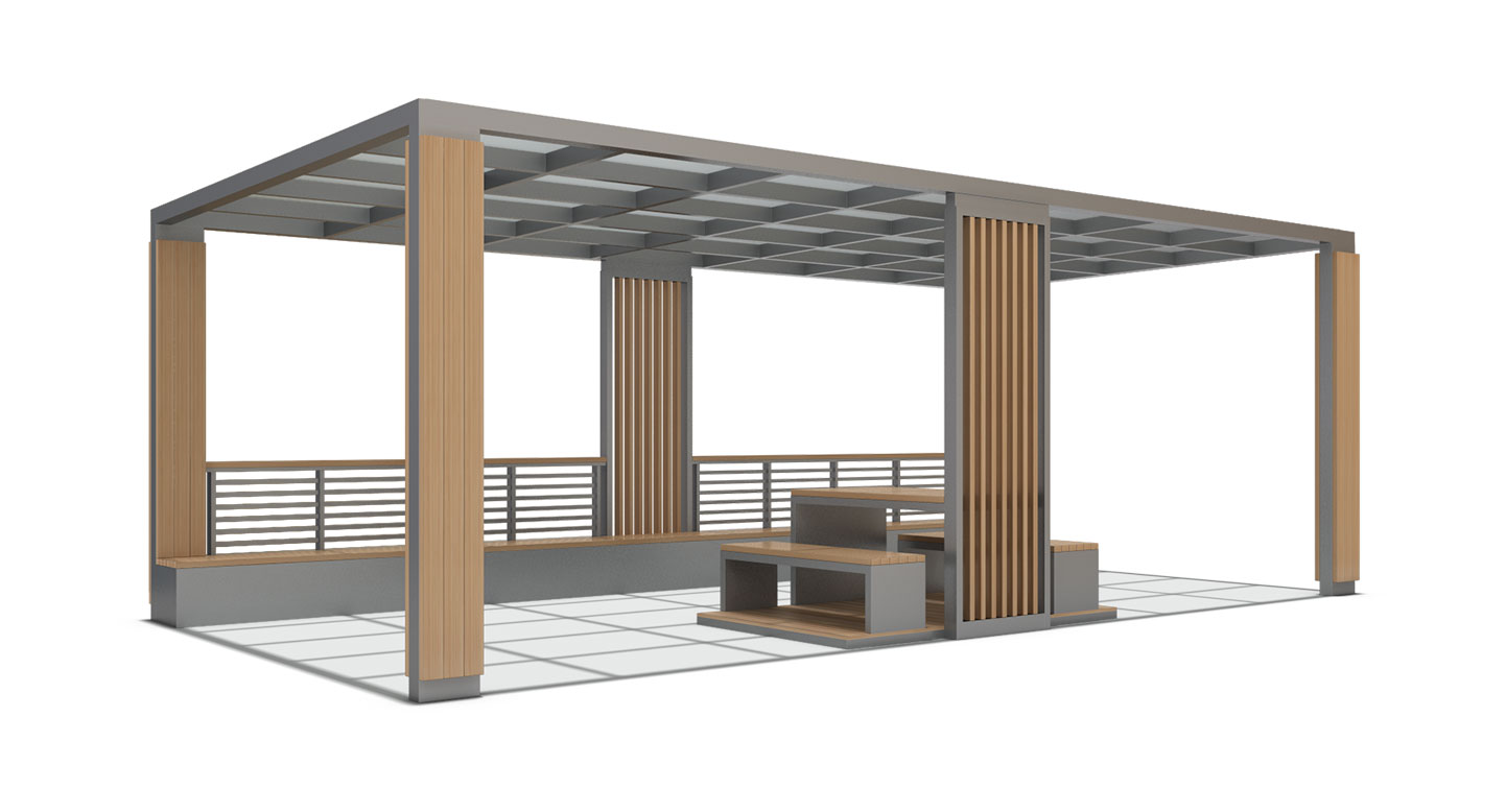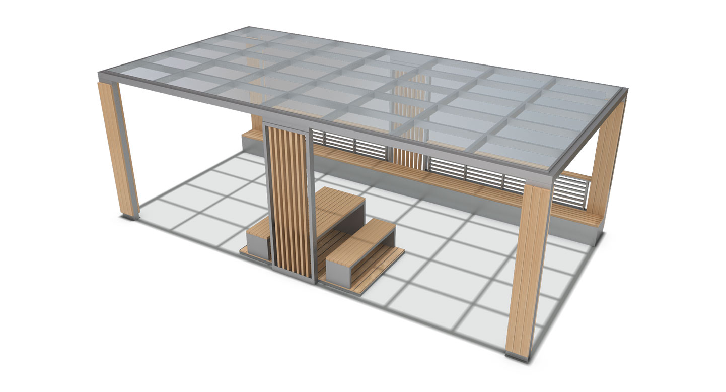 실버 루버 테이블 홀 프라임 (SILVER LOUVER TABLE HALL PRIME)|DAUM-P-781B 제품목록으로 바로가기 자료 및 바로가기 나라장터 바로연결 도면 다운로드 시공사진 보러가기 기타 도시적인 실버 그레이 프레임과 정갈한 수직 루버 포스트가 어우러져 현대적이고 신뢰감 있는 경관을 연출합니다. 루프 아래 독립적인 테이블 세트와 배면 전체를 활용한 통합형 벤치를 효율적으로 배치하여, 단지 내 광장이나 휴게 정원에 안락한 커뮤니티 거점을 제공합니다. 제품명 실버 루버 테이블 홀 프라임 (SILVER LOUVER TABLE HALL PRIME)|DAUM-P-781B 물품식별번호 25022413 규격 7,500 X 3,800 X 2,666(H) 재질 stl, galvanized, hard wood, polycarbonate, hpl 실버 루버 테이블 홀 프라임 (SILVER LOUVER TABLE HALL PRIME)|DAUM-P-781B 물품식별번호 25022413 규격 7,500 X 3,800 X 2,666(H) 재질 stl, galvanized, hard wood, polycarbonate, hpl 기타 도시적인 실버 그레이 프레임과 정갈한 수직 루버 포스트가 어우러져 현대적이고 신뢰감 있는 경관을 연출합니다. 루프 아래 독립적인 테이블 세트와 배면 전체를 활용한 통합형 벤치를 효율적으로 배치하여, 단지 내 광장이나 휴게 정원에 안락한 커뮤니티 거점을 제공합니다. 자료 및 바로가기 나라장터 바로연결 도면 다운로드 시공사진 보러가기