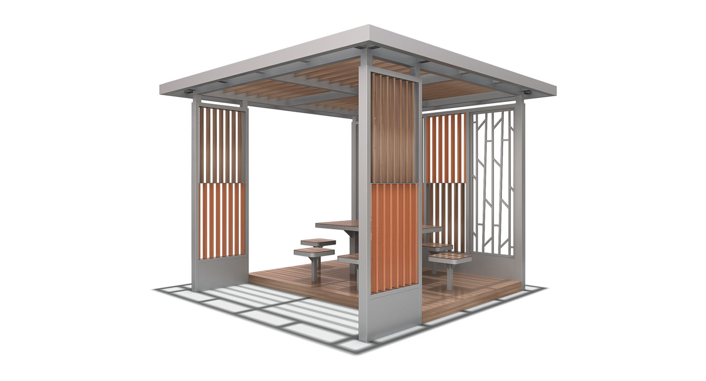오렌지 루버 베이직(ORANGE LOUVER BASIC)|DAUM-P-175B-1 제품목록으로 바로가기 자료 및 바로가기 나라장터 바로연결 도면 다운로드 시공사진 보러가기 기타 청량한 화이트 프레임과 산뜻한 오렌지빛 우드 살대가 감각적으로 대비되는 디자인으로, 내부 평상과 테이블 세트가 일체형으로 구성되어 단지 내 휴식 공간에 안락한 체류성과 정제된 모던미를 동시에 더합니다. 제품명 오렌지 루버 베이직(ORANGE LOUVER BASIC)|DAUM-P-175B-1 물품식별번호 25031401 규격 3,600 X 3,600 X 2,625(H) 재질 stl, galvanized, hard wood, polycarbonate 오렌지 루버 베이직(ORANGE LOUVER BASIC)|DAUM-P-175B-1 물품식별번호 25031401 규격 3,600 X 3,600 X 2,625(H) 재질 stl, galvanized, hard wood, polycarbonate 기타 청량한 화이트 프레임과 산뜻한 오렌지빛 우드 살대가 감각적으로 대비되는 디자인으로, 내부 평상과 테이블 세트가 일체형으로 구성되어 단지 내 휴식 공간에 안락한 체류성과 정제된 모던미를 동시에 더합니다. 자료 및 바로가기 나라장터 바로연결 도면 다운로드 시공사진 보러가기