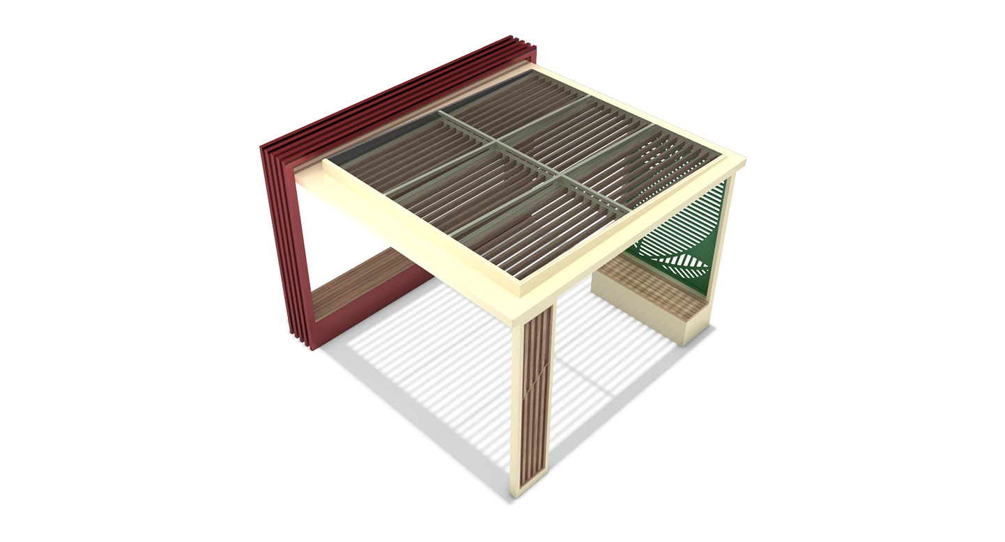버티컬 레드 플러스(VERTICAL RED PLUS)|DAUM-P-1124 제품목록으로 바로가기 자료 및 바로가기 나라장터 바로연결 도면 다운로드 시공사진 보러가기 기타 강렬한 레드 컬러의 수직 루버 기둥이 공간에 선명한 포인트와 리듬감을 부여합니다. 아이보리 톤의 모던한 프레임 배면에 상징적인 나뭇잎 패턴 스크린을 매치하여, 단지 내 휴게 공간에 감각적인 조형미와 안락함을 동시에 갖춘 프리미엄 쉼터를 제공합니다. 제품명 버티컬 레드 플러스(VERTICAL RED PLUS)|DAUM-P-1124 물품식별번호 25018009 규격 4,000 X 4,000 X 2,800(H) 재질 stl, galvanized, hard wood, polycarbonate 버티컬 레드 플러스(VERTICAL RED PLUS)|DAUM-P-1124 물품식별번호 25018009 규격 4,000 X 4,000 X 2,800(H) 재질 stl, galvanized, hard wood, polycarbonate 기타 강렬한 레드 컬러의 수직 루버 기둥이 공간에 선명한 포인트와 리듬감을 부여합니다. 아이보리 톤의 모던한 프레임 배면에 상징적인 나뭇잎 패턴 스크린을 매치하여, 단지 내 휴게 공간에 감각적인 조형미와 안락함을 동시에 갖춘 프리미엄 쉼터를 제공합니다. 자료 및 바로가기 나라장터 바로연결 도면 다운로드 시공사진 보러가기