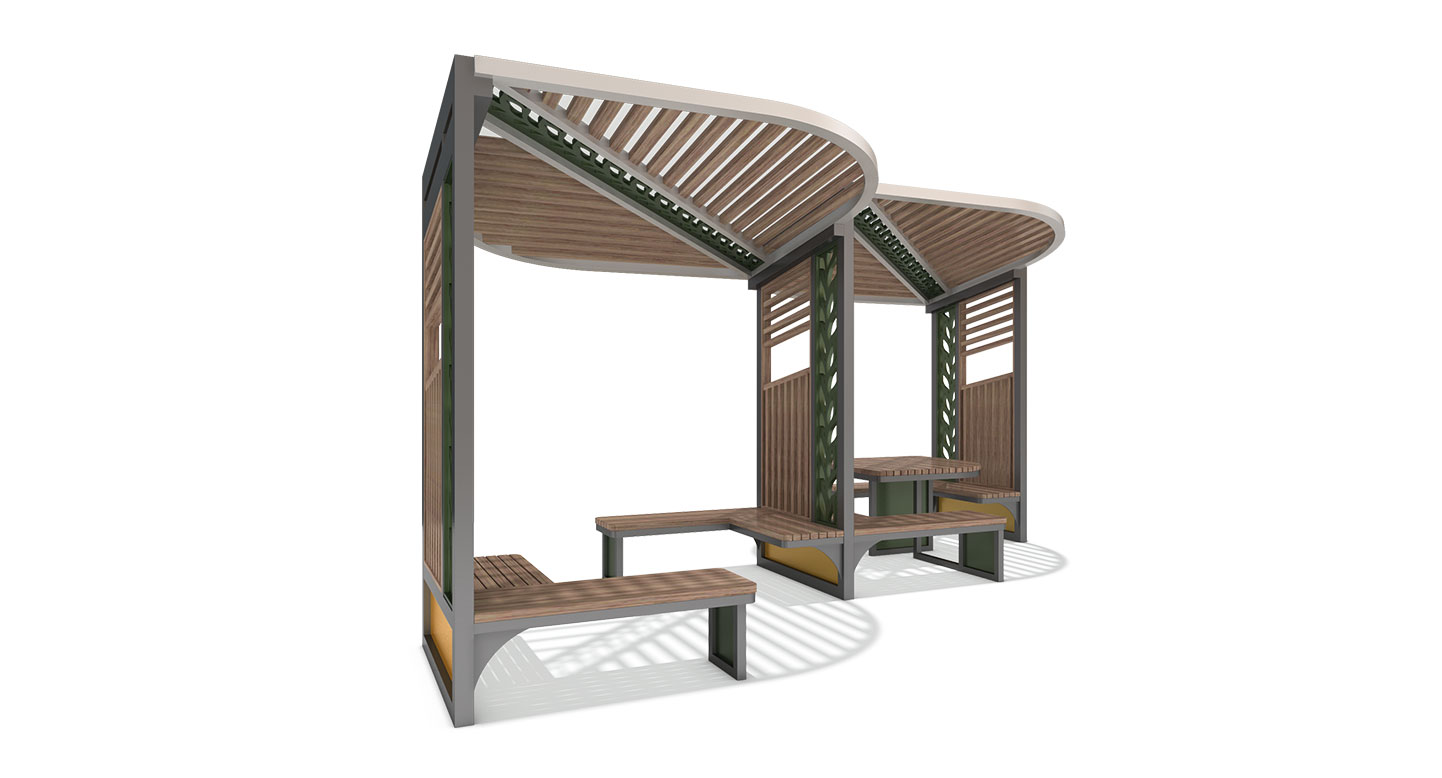리프 링크 쉘터(LEAF LINK SHELTER)|DAUM-P-428M-1 제품목록으로 바로가기 자료 및 바로가기 나라장터 바로연결 도면 다운로드 시공사진 보러가기 기타 나뭇잎 모티프의 조형 유닛 두 개를 연결하여 대형 휴게 공간을 형성했습니다. 지그재그로 배치된 구조가 시각적 즐거움을 주며, 다수의 인원이 동시에 머물 수 있는 확장형 조형 퍼걸러입니다. 제품명 리프 링크 쉘터(LEAF LINK SHELTER)|DAUM-P-428M-1 물품식별번호 24161847 규격 5,225 X 3,650 X 2,808(H) 재질 stl, hard wood, polycarbonate, galvanized, birchplywood 리프 링크 쉘터(LEAF LINK SHELTER)|DAUM-P-428M-1 물품식별번호 24161847 규격 5,225 X 3,650 X 2,808(H) 재질 stl, hard wood, polycarbonate, galvanized, birchplywood 기타 나뭇잎 모티프의 조형 유닛 두 개를 연결하여 대형 휴게 공간을 형성했습니다. 지그재그로 배치된 구조가 시각적 즐거움을 주며, 다수의 인원이 동시에 머물 수 있는 확장형 조형 퍼걸러입니다. 자료 및 바로가기 나라장터 바로연결 도면 다운로드 시공사진 보러가기