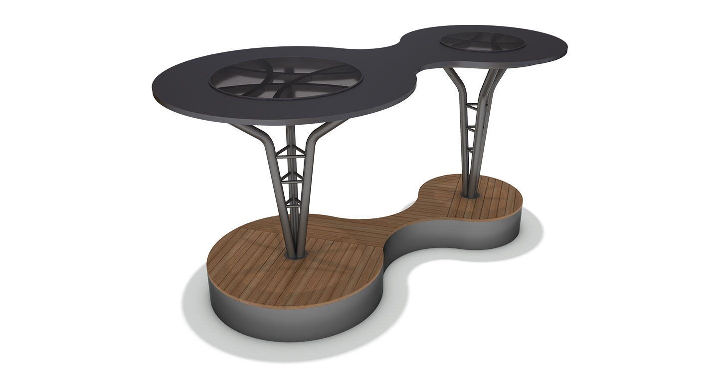 링크드 셀(LINKED CELL)|DAUM-P-301 제품목록으로 바로가기 자료 및 바로가기 나라장터 바로연결 도면 다운로드 시공사진 보러가기 기타 두 개의 원형 지붕과 하부 평상이 매끄러운 곡선으로 연결된 유기적 디자인입니다. 트러스 구조의 슬림한 기둥이 미래지향적인 분위기를 자아내며 공간에 리듬감을 부여하는 고감도 조형물입니다. 제품명 링크드 셀(LINKED CELL)|DAUM-P-301 물품식별번호 23142134 규격 5,000 X 2,600 X 2,692(H) 재질 stl, hard wood, galvanized, polycarbonate 링크드 셀(LINKED CELL)|DAUM-P-301 물품식별번호 23142134 규격 5,000 X 2,600 X 2,692(H) 재질 stl, hard wood, galvanized, polycarbonate 기타 두 개의 원형 지붕과 하부 평상이 매끄러운 곡선으로 연결된 유기적 디자인입니다. 트러스 구조의 슬림한 기둥이 미래지향적인 분위기를 자아내며 공간에 리듬감을 부여하는 고감도 조형물입니다. 자료 및 바로가기 나라장터 바로연결 도면 다운로드 시공사진 보러가기