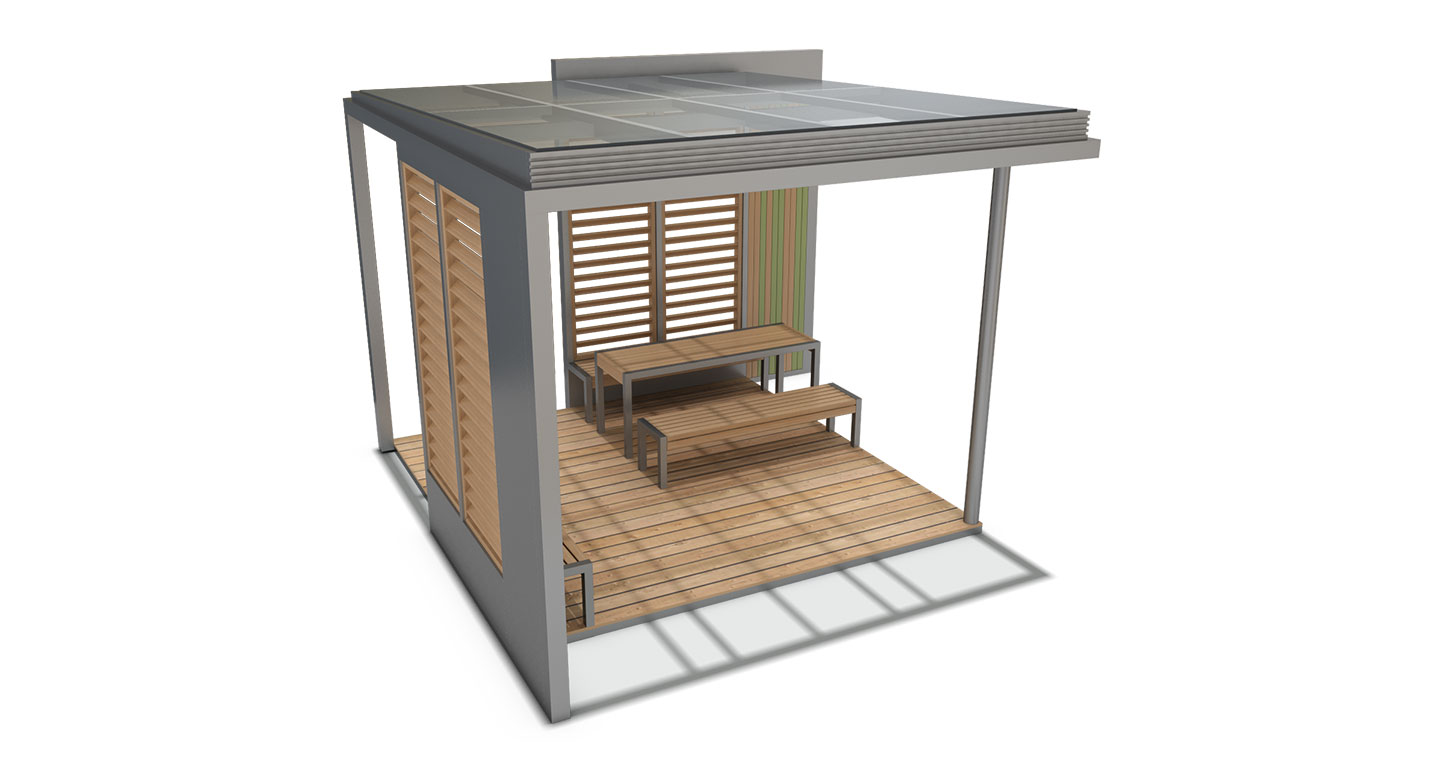 우드 라운지 플러스 (WOOD LOUNGE PLUS)DAUM-P-195 제품목록으로 바로가기 자료 및 바로가기 나라장터 바로연결 도면 다운로드 시공사진 보러가기 기타 와이드한 목재 데크와 루버 스크린이 어우러져 도심 속 아늑한 테라스 감성을 선사합니다. 세련된 그레이 프레임 아래로 등받이 벤치와 독립형 테이블 세트를 구성하여, 단지 내 휴게 공간에 소규모 모임과 휴식을 동시에 즐길 수 있는 프리미엄 오픈 라운지를 제공합니다. 제품명 우드 라운지 플러스 (WOOD LOUNGE PLUS)DAUM-P-195 물품식별번호 25017782 규격 4,000 X 4,000 X 2,900(H) 재질 stl, galvanized, hard wood, polycarbonate 우드 라운지 플러스 (WOOD LOUNGE PLUS)DAUM-P-195 물품식별번호 25017782 규격 4,000 X 4,000 X 2,900(H) 재질 stl, galvanized, hard wood, polycarbonate 기타 와이드한 목재 데크와 루버 스크린이 어우러져 도심 속 아늑한 테라스 감성을 선사합니다. 세련된 그레이 프레임 아래로 등받이 벤치와 독립형 테이블 세트를 구성하여, 단지 내 휴게 공간에 소규모 모임과 휴식을 동시에 즐길 수 있는 프리미엄 오픈 라운지를 제공합니다. 자료 및 바로가기 나라장터 바로연결 도면 다운로드 시공사진 보러가기