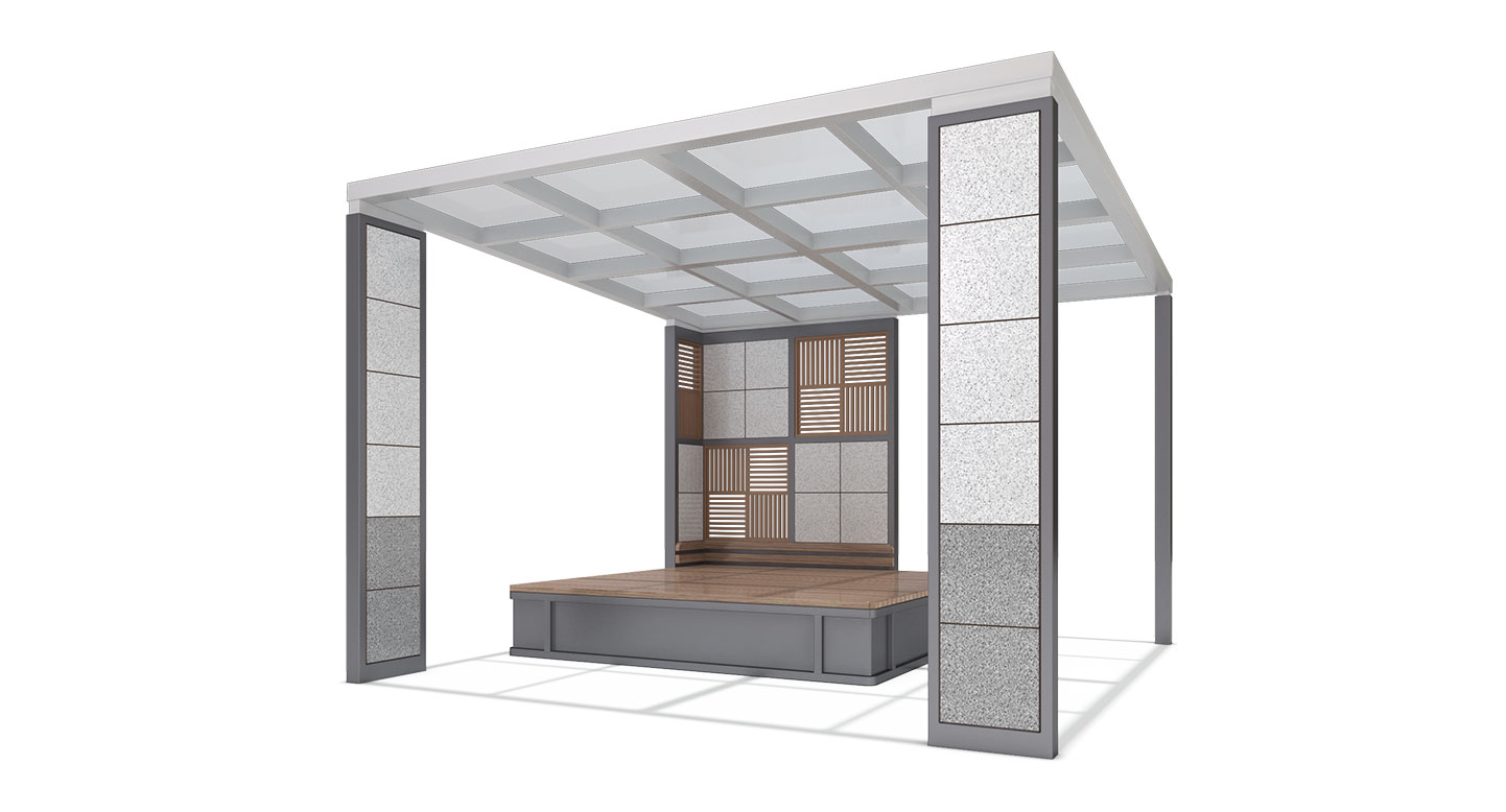 아트월 갤러리 쉘터(ART-WALL GALLERY SHELTER)|DAUM-P-185B 제품목록으로 바로가기 자료 및 바로가기 나라장터 바로연결 도면 다운로드 시공사진 보러가기 기타 와이드한 석재 패턴 포스트와 배면의 체크형 아트월이 어우러져 현대적이고 견고한 갤러리 감성을 연출합니다. 세련된 화이트 프레임 루프 아래 광폭 목재 평상을 배치하여, 단지 내 휴게 공간에 전통적인 편안함과 모던한 미감을 동시에 갖춘 프리미엄 쉼터를 제공합니다. 제품명 아트월 갤러리 쉘터(ART-WALL GALLERY SHELTER)|DAUM-P-185B 물품식별번호 24538217 규격 3,800 X 3,800 X 2,700(H) 재질 stl, galvanized, hard wood, polycarbonate 아트월 갤러리 쉘터(ART-WALL GALLERY SHELTER)|DAUM-P-185B 물품식별번호 24538217 규격 3,800 X 3,800 X 2,700(H) 재질 stl, galvanized, hard wood, polycarbonate 기타 와이드한 석재 패턴 포스트와 배면의 체크형 아트월이 어우러져 현대적이고 견고한 갤러리 감성을 연출합니다. 세련된 화이트 프레임 루프 아래 광폭 목재 평상을 배치하여, 단지 내 휴게 공간에 전통적인 편안함과 모던한 미감을 동시에 갖춘 프리미엄 쉼터를 제공합니다. 자료 및 바로가기 나라장터 바로연결 도면 다운로드 시공사진 보러가기
