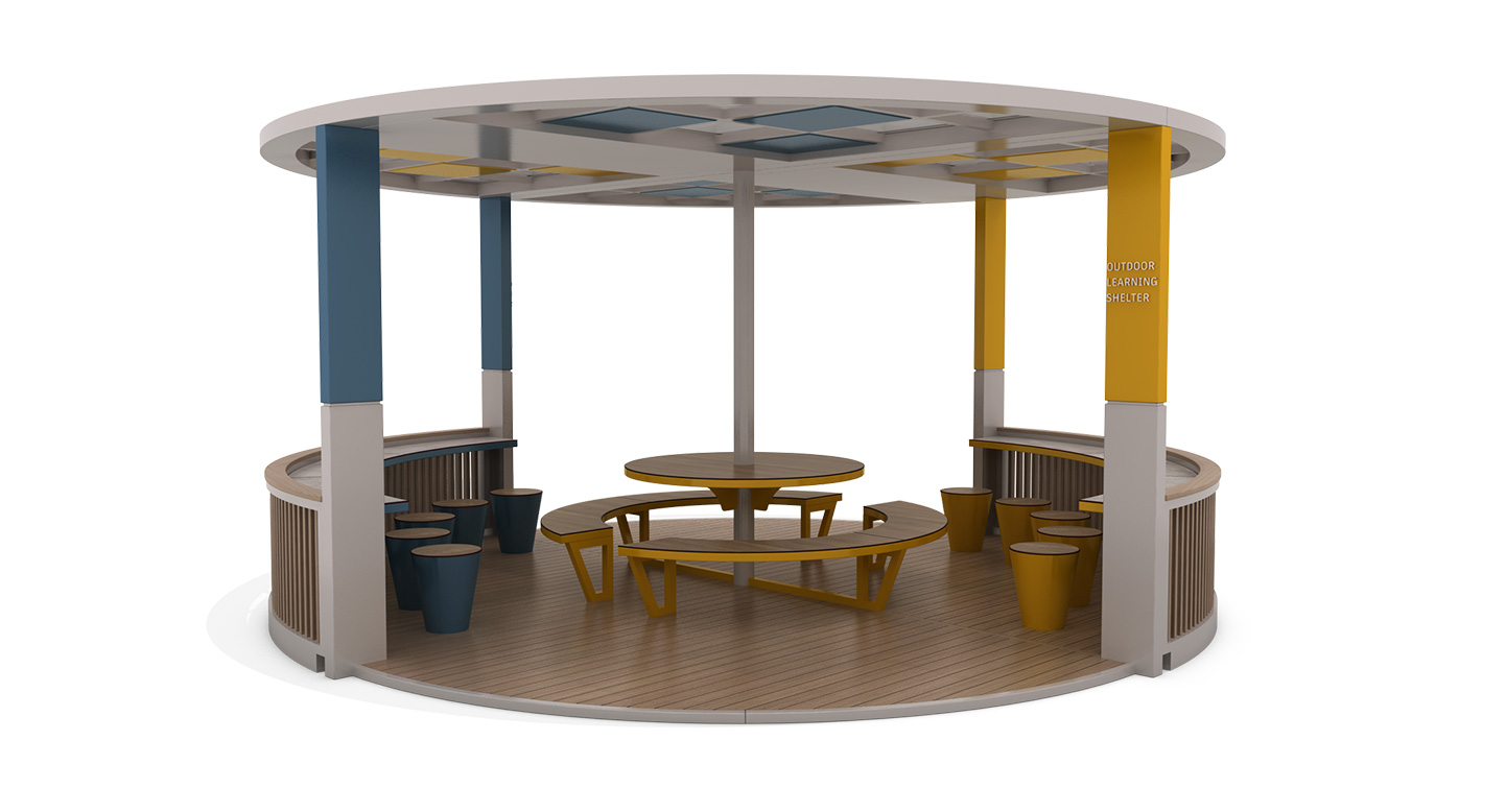 비비드 라운드 아고라(VIVID ROUND AGORA)|DAUM-P-2764 제품목록으로 바로가기 자료 및 바로가기 나라장터 바로연결 도면 다운로드 시공사진 보러가기 기타 옐로우와 블루 포인트 기둥이 돋보이는 원형 학습장입니다. 중앙 테이블과 외곽 벤치가 조화를 이루어 다채로운 모둠 활동과 자유로운 소통이 가능합니다. 제품명 비비드 라운드 아고라(VIVID ROUND AGORA)|DAUM-P-2764 물품식별번호 25939656 규격 6,000 × 6,000 × 2,900(H) 재질 stl, galvanized, hard wood, polycarbonate, hpl 비비드 라운드 아고라(VIVID ROUND AGORA)|DAUM-P-2764 물품식별번호 25939656 규격 6,000 × 6,000 × 2,900(H) 재질 stl, galvanized, hard wood, polycarbonate, hpl 기타 옐로우와 블루 포인트 기둥이 돋보이는 원형 학습장입니다. 중앙 테이블과 외곽 벤치가 조화를 이루어 다채로운 모둠 활동과 자유로운 소통이 가능합니다. 자료 및 바로가기 나라장터 바로연결 도면 다운로드 시공사진 보러가기