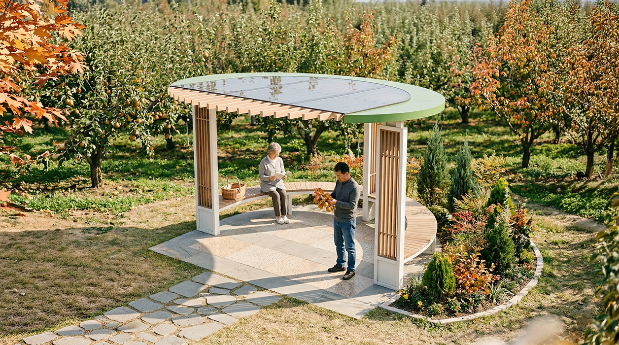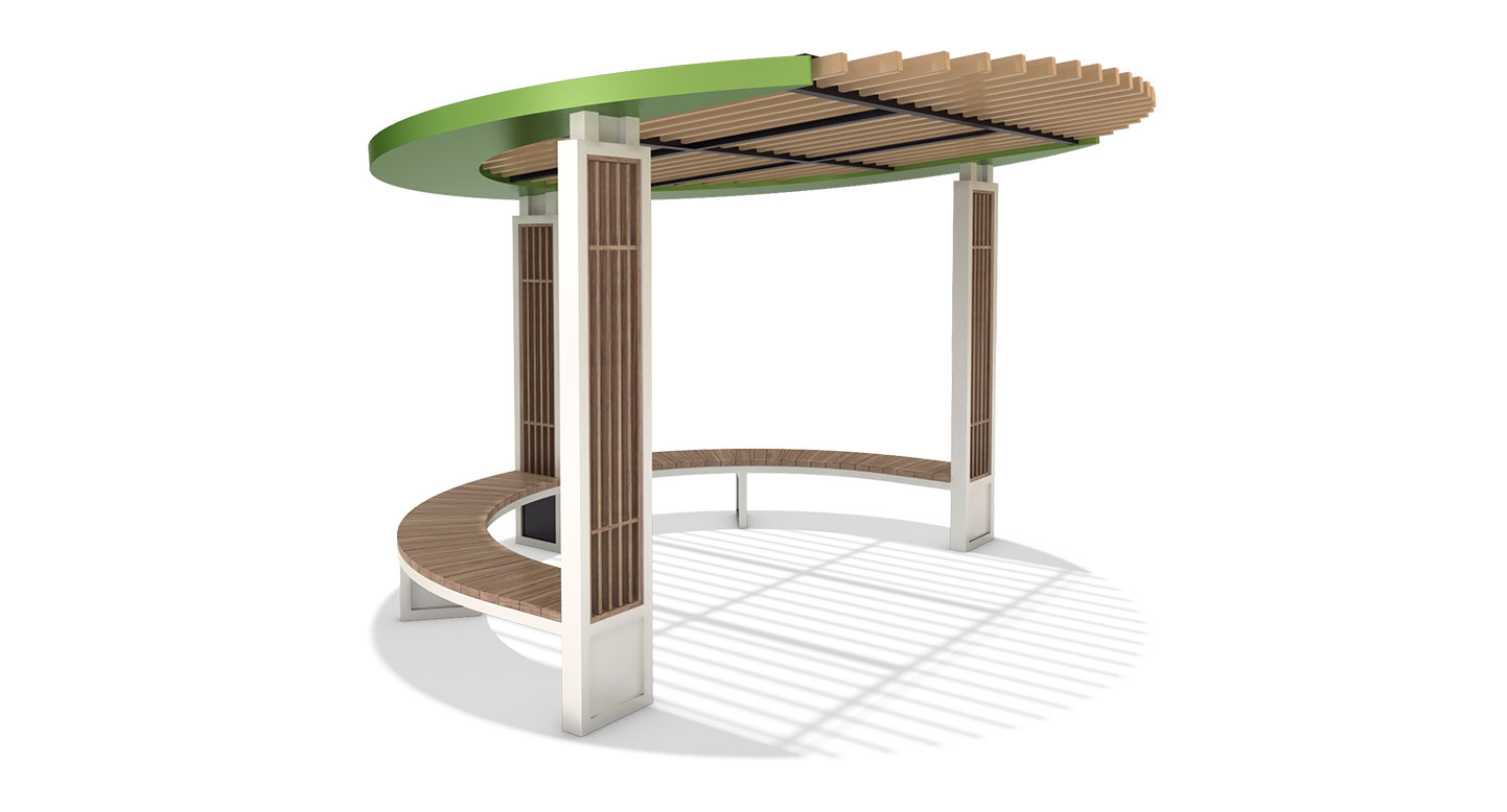 그린 리프 셰이드 라운드(GREEN LEAF SHADE ROUND)|DAUM-P-324 제품목록으로 바로가기 자료 및 바로가기 나라장터 바로연결 도면 다운로드 시공사진 보러가기 기타 나뭇잎을 연상시키는 비대칭 그린 포인트 루프와 살대형 목재 루버가 어우러져 자연 친화적인 분위기를 연출합니다. 루프 라인을 따라 배치된 와이드한 곡선 벤치를 통해 숲속 정원에 머무는 듯한 편안하고 안락한 휴식을 제공합니다. 제품명 그린 리프 셰이드 라운드(GREEN LEAF SHADE ROUND)|DAUM-P-324 물품식별번호 25019798 규격 3,800 X 3,792 X 2,530(H) 재질 stl, hard wood, galvanized, polycarbonate 그린 리프 셰이드 라운드(GREEN LEAF SHADE ROUND)|DAUM-P-324 물품식별번호 25019798 규격 3,800 X 3,792 X 2,530(H) 재질 stl, hard wood, galvanized, polycarbonate 기타 나뭇잎을 연상시키는 비대칭 그린 포인트 루프와 살대형 목재 루버가 어우러져 자연 친화적인 분위기를 연출합니다. 루프 라인을 따라 배치된 와이드한 곡선 벤치를 통해 숲속 정원에 머무는 듯한 편안하고 안락한 휴식을 제공합니다. 자료 및 바로가기 나라장터 바로연결 도면 다운로드 시공사진 보러가기