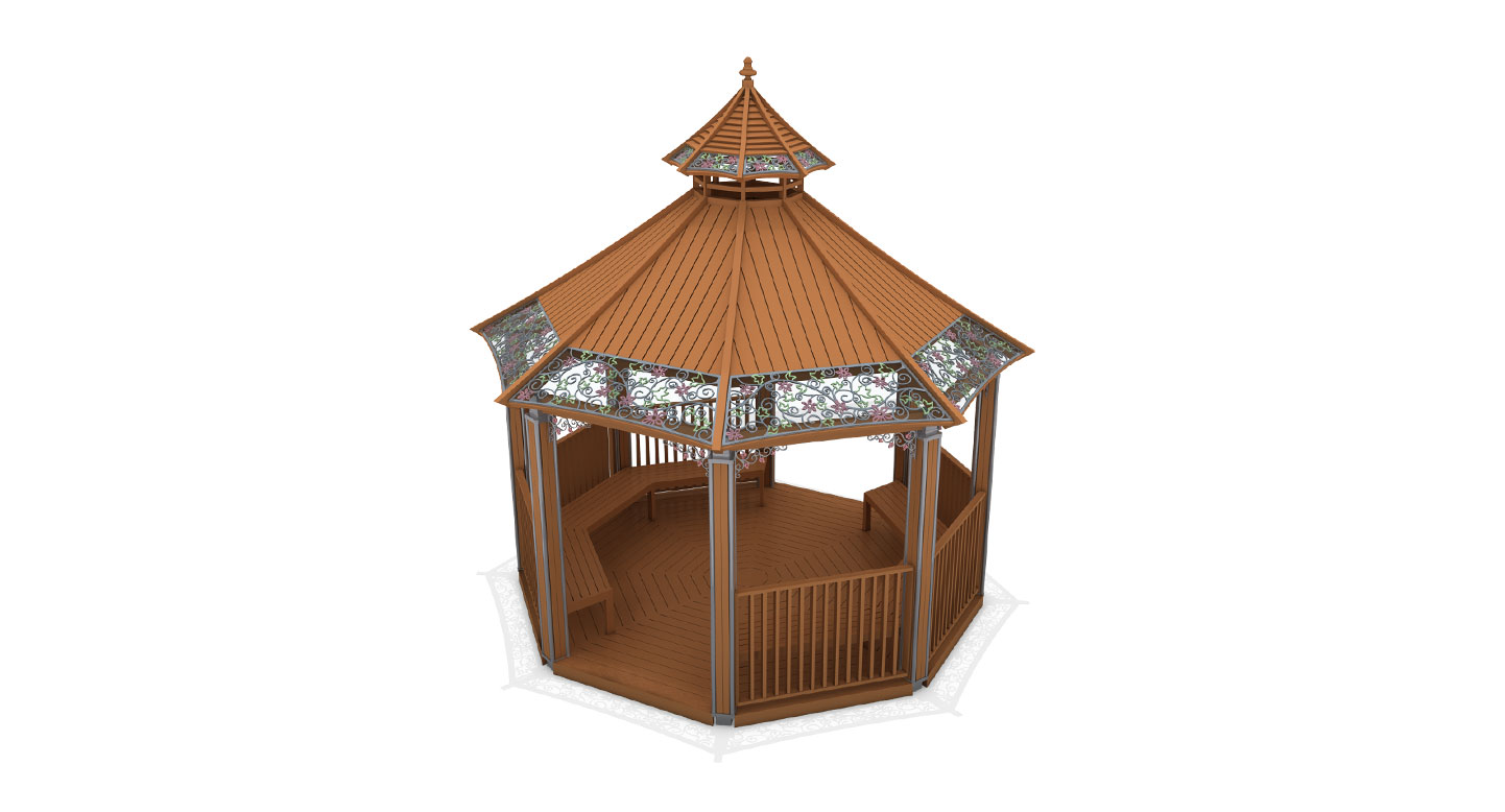 팀버 플로럴 옥타곤(TIMBER FLORAL OCTAGON)|DAUM-P-146A 제품목록으로 바로가기 자료 및 바로가기 나라장터 바로연결 도면 다운로드 시공사진 보러가기 기타 팔각 원뿔형 루프의 하단에 화려한 꽃 넝쿨 문양의 스크린을 둘러 예술적인 감성을 극대화했습니다. 루프 꼭대기의 조형 장식과 내부의 팔각 월 벤치가 어우러져 정원 한복판에서 한 폭의 그림 같은 경관을 완성합니다. 제품명 팀버 플로럴 옥타곤(TIMBER FLORAL OCTAGON)|DAUM-P-146A 물품식별번호 25024859 규격 5,241 X 5,241 X 5,045(H) 재질 stl, hard wood, al-casting, polycarbonate 팀버 플로럴 옥타곤(TIMBER FLORAL OCTAGON)|DAUM-P-146A 물품식별번호 25024859 규격 5,241 X 5,241 X 5,045(H) 재질 stl, hard wood, al-casting, polycarbonate 기타 팔각 원뿔형 루프의 하단에 화려한 꽃 넝쿨 문양의 스크린을 둘러 예술적인 감성을 극대화했습니다. 루프 꼭대기의 조형 장식과 내부의 팔각 월 벤치가 어우러져 정원 한복판에서 한 폭의 그림 같은 경관을 완성합니다. 자료 및 바로가기 나라장터 바로연결 도면 다운로드 시공사진 보러가기