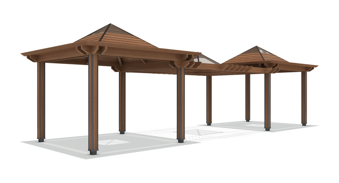 팀버 그랜드(TIMBER GRAND)|DAUM-P-409A 제품목록으로 바로가기 자료 및 바로가기 나라장터 바로연결 도면 다운로드 시공사진 보러가기 기타 하드우드의 묵직한 물성을 가장 잘 보여주는 웅장한(Grand) 스케일의 모델입니다. 넓게 뻗은 지붕과 견고한 구조가 압도적인 안정감을 주며, 대규모 단지의 메인 공간에 무게 중심을 잡아주는 랜드마크형 퍼걸러입니다. 제품명 팀버 그랜드(TIMBER GRAND)|DAUM-P-409A 물품식별번호 25029123 규격 10,940 X 4,000 X 3,530(H) 재질 stl, hard wood, galvanized, polycarbonate 팀버 그랜드(TIMBER GRAND)|DAUM-P-409A 물품식별번호 25029123 규격 10,940 X 4,000 X 3,530(H) 재질 stl, hard wood, galvanized, polycarbonate 기타 하드우드의 묵직한 물성을 가장 잘 보여주는 웅장한(Grand) 스케일의 모델입니다. 넓게 뻗은 지붕과 견고한 구조가 압도적인 안정감을 주며, 대규모 단지의 메인 공간에 무게 중심을 잡아주는 랜드마크형 퍼걸러입니다. 자료 및 바로가기 나라장터 바로연결 도면 다운로드 시공사진 보러가기