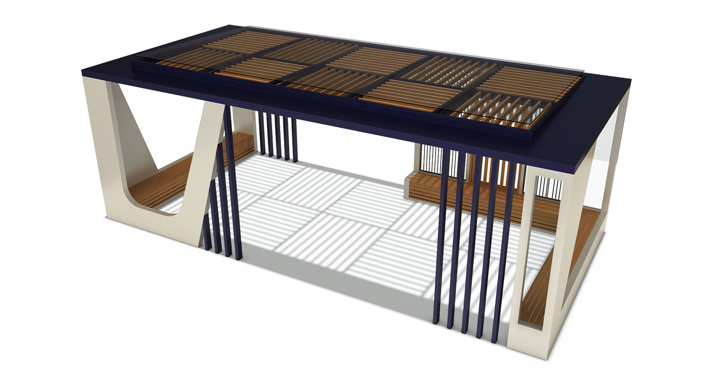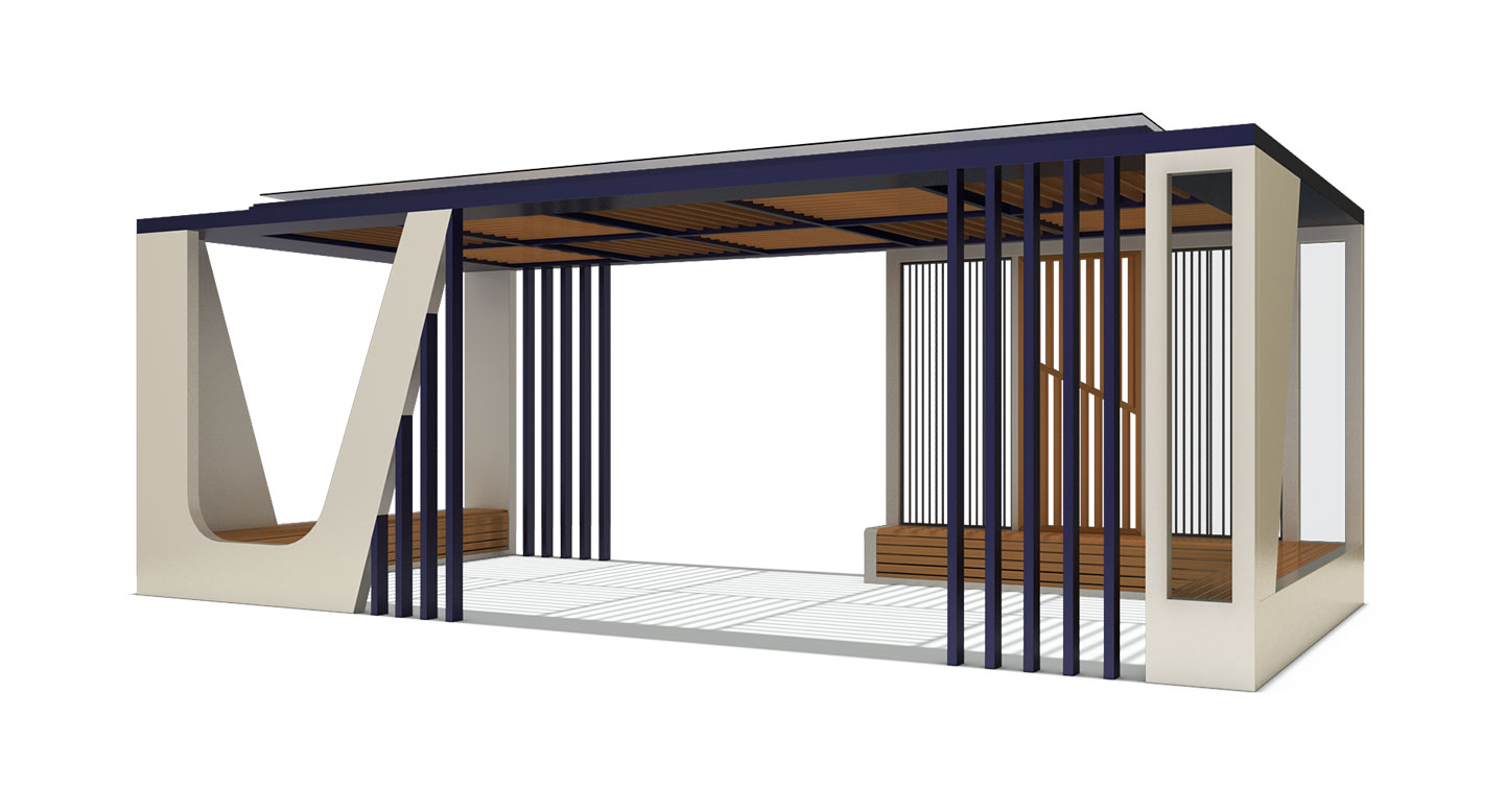 브이 월 루버 와이드 홀 프라임(V-WALL LOUVER WIDE HALL PRIME)|DAUM-P-1702 제품목록으로 바로가기 자료 및 바로가기 나라장터 바로연결 도면 다운로드 시공사진 보러가기 기타 독창적인 'V'자형 사이드 월과 딥블루 톤의 수직 루버가 어우러져 현대적이고 감각적인 조형미를 선사합니다. 와이드 프레임 내부에 통합 벤치를 조화롭게 배치하여 단지 내 주요 거점에서 다수가 편안하게 머물 수 있는 고품격 프리미엄 복합 쉼터를 제공합니다. 제품명 브이 월 루버 와이드 홀 프라임(V-WALL LOUVER WIDE HALL PRIME)|DAUM-P-1702 물품식별번호 25022687 규격 7,500 X 3,600 X 2,700(H) 재질 stl, galvanized, hard wood, polycarbonate 브이 월 루버 와이드 홀 프라임(V-WALL LOUVER WIDE HALL PRIME)|DAUM-P-1702 물품식별번호 25022687 규격 7,500 X 3,600 X 2,700(H) 재질 stl, galvanized, hard wood, polycarbonate 기타 독창적인 'V'자형 사이드 월과 딥블루 톤의 수직 루버가 어우러져 현대적이고 감각적인 조형미를 선사합니다. 와이드 프레임 내부에 통합 벤치를 조화롭게 배치하여 단지 내 주요 거점에서 다수가 편안하게 머물 수 있는 고품격 프리미엄 복합 쉼터를 제공합니다. 자료 및 바로가기 나라장터 바로연결 도면 다운로드 시공사진 보러가기