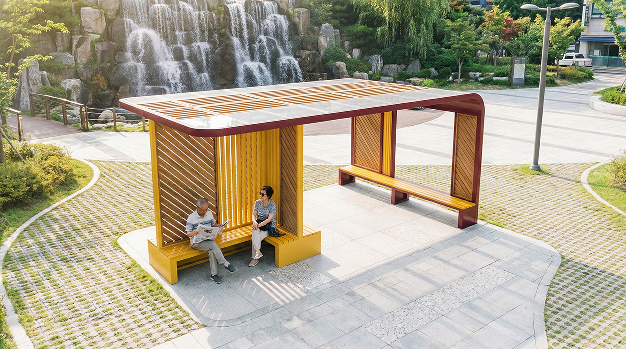 와인 옐로우 루버 홀 프라임 (WINE YELLOW LOUVER HALL PRIME)|DAUM-P-1745 제품목록으로 바로가기 자료 및 바로가기 나라장터 바로연결 도면 다운로드 시공사진 보러가기 기타 감각적인 와인 컬러의 라운드 프레임과 선명한 옐로우 포스트의 대비가 독창적인 경관을 연출합니다. 사선과 수직으로 교차하는 루버 스크린이 세련된 미감을 더하며, 루프 아래 통합 벤치를 구성하여 단지 내 활력을 불어넣는 개성 있는 복합 휴게 공간을 제공합니다. 제품명 와인 옐로우 루버 홀 프라임 (WINE YELLOW LOUVER HALL PRIME)|DAUM-P-1745 물품식별번호 25024043 규격 6,000 X 4,000 X 2,700(H) 재질 stl, galvanized, hard wood, polycarbonate 와인 옐로우 루버 홀 프라임 (WINE YELLOW LOUVER HALL PRIME)|DAUM-P-1745 물품식별번호 25024043 규격 6,000 X 4,000 X 2,700(H) 재질 stl, galvanized, hard wood, polycarbonate 기타 감각적인 와인 컬러의 라운드 프레임과 선명한 옐로우 포스트의 대비가 독창적인 경관을 연출합니다. 사선과 수직으로 교차하는 루버 스크린이 세련된 미감을 더하며, 루프 아래 통합 벤치를 구성하여 단지 내 활력을 불어넣는 개성 있는 복합 휴게 공간을 제공합니다. 자료 및 바로가기 나라장터 바로연결 도면 다운로드 시공사진 보러가기