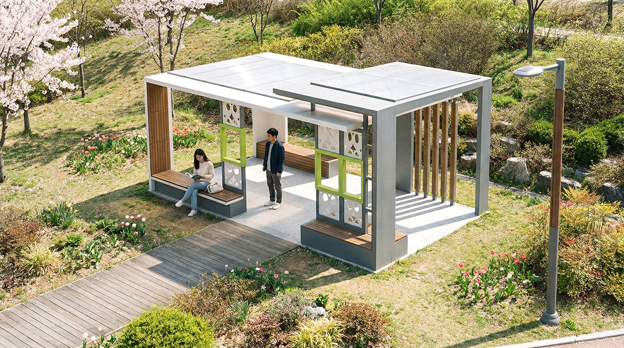 서클 아트월 와이드 홀 프라임 (CIRCLE ARTWALL WIDE HALL PRIME)|DAUM-P-1728 제품목록으로 바로가기 자료 및 바로가기 나라장터 바로연결 도면 다운로드 시공사진 보러가기 기타 단차를 둔 듀얼 매스 구조와 서클 패턴 아트월이 어우러져 예술적인 조형미를 선사합니다. 연두색 포인트 프레임으로 생동감을 더했으며, 내부의 독립형 벤치 구성을 통해 단지 내 활력을 불어넣는 프리미엄 복합 휴게 공간을 제공합니다. 제품명 서클 아트월 와이드 홀 프라임 (CIRCLE ARTWALL WIDE HALL PRIME)|DAUM-P-1728 물품식별번호 25024038 규격 7,000 X 4,000 X 3,100(H) 재질 stl, galvanized, hard wood, polycarbonate 서클 아트월 와이드 홀 프라임 (CIRCLE ARTWALL WIDE HALL PRIME)|DAUM-P-1728 물품식별번호 25024038 규격 7,000 X 4,000 X 3,100(H) 재질 stl, galvanized, hard wood, polycarbonate 기타 단차를 둔 듀얼 매스 구조와 서클 패턴 아트월이 어우러져 예술적인 조형미를 선사합니다. 연두색 포인트 프레임으로 생동감을 더했으며, 내부의 독립형 벤치 구성을 통해 단지 내 활력을 불어넣는 프리미엄 복합 휴게 공간을 제공합니다. 자료 및 바로가기 나라장터 바로연결 도면 다운로드 시공사진 보러가기
