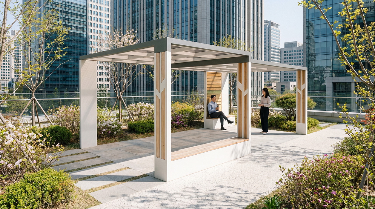듀얼 슬롯 벤치 홀 프라임 (DUAL SLOT BENCH HALL PRIME)|DAUM-P-1733 제품목록으로 바로가기 자료 및 바로가기 나라장터 바로연결 도면 다운로드 시공사진 보러가기 기타 서로 다른 높이의 루프가 결합된 입체적인 구조와 포스트의 우드 슬롯 디테일이 현대적인 미감을 완성합니다. 7m 광폭 규격 내부에 통합형 벤치와 포인트 월을 구성하여 단지 내 주요 광장에 품격 있는 휴게 거점을 제공합니다. 제품명 듀얼 슬롯 벤치 홀 프라임 (DUAL SLOT BENCH HALL PRIME)|DAUM-P-1733 물품식별번호 25024040 규격 7,000 X 3,800 X 2,890(H) 재질 stl, galvanized, hard wood, polycarbonate 듀얼 슬롯 벤치 홀 프라임 (DUAL SLOT BENCH HALL PRIME)|DAUM-P-1733 물품식별번호 25024040 규격 7,000 X 3,800 X 2,890(H) 재질 stl, galvanized, hard wood, polycarbonate 기타 서로 다른 높이의 루프가 결합된 입체적인 구조와 포스트의 우드 슬롯 디테일이 현대적인 미감을 완성합니다. 7m 광폭 규격 내부에 통합형 벤치와 포인트 월을 구성하여 단지 내 주요 광장에 품격 있는 휴게 거점을 제공합니다. 자료 및 바로가기 나라장터 바로연결 도면 다운로드 시공사진 보러가기