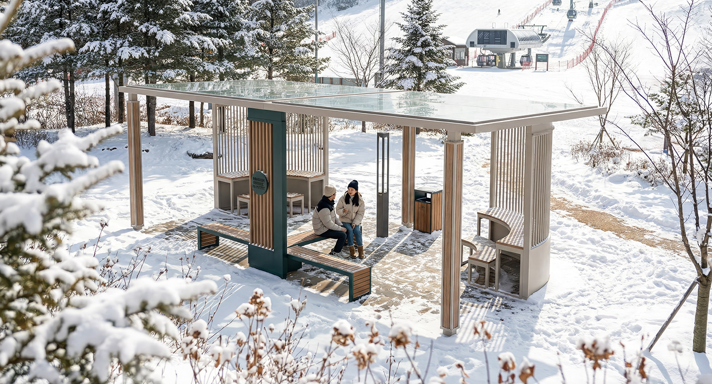 커브드 월 홀 프라임(CURVED WALL HALL PRIME)|DAUM-P-2711 제품목록으로 바로가기 자료 및 바로가기 나라장터 바로연결 도면 다운로드 시공사진 보러가기 기타 곡면 슬랫 월이 한쪽을 감싸며 비스듬한 지붕과 대비를 이루고, 직선 프레임과 곡선의 조화가 단지 보행 동선 속에 차분한 머무름과 방향성을 부여하는 모던 대형 라운지 공간입니다. 제품명 커브드 월 홀 프라임(CURVED WALL HALL PRIME)|DAUM-P-2711 물품식별번호 25828424 규격 7,600 × 3,800 × 2,800(H) 재질 stl, galvanized, hard wood, polycarbonate, hpl 커브드 월 홀 프라임(CURVED WALL HALL PRIME)|DAUM-P-2711 물품식별번호 25828424 규격 7,600 × 3,800 × 2,800(H) 재질 stl, galvanized, hard wood, polycarbonate, hpl 기타 곡면 슬랫 월이 한쪽을 감싸며 비스듬한 지붕과 대비를 이루고, 직선 프레임과 곡선의 조화가 단지 보행 동선 속에 차분한 머무름과 방향성을 부여하는 모던 대형 라운지 공간입니다. 자료 및 바로가기 나라장터 바로연결 도면 다운로드 시공사진 보러가기