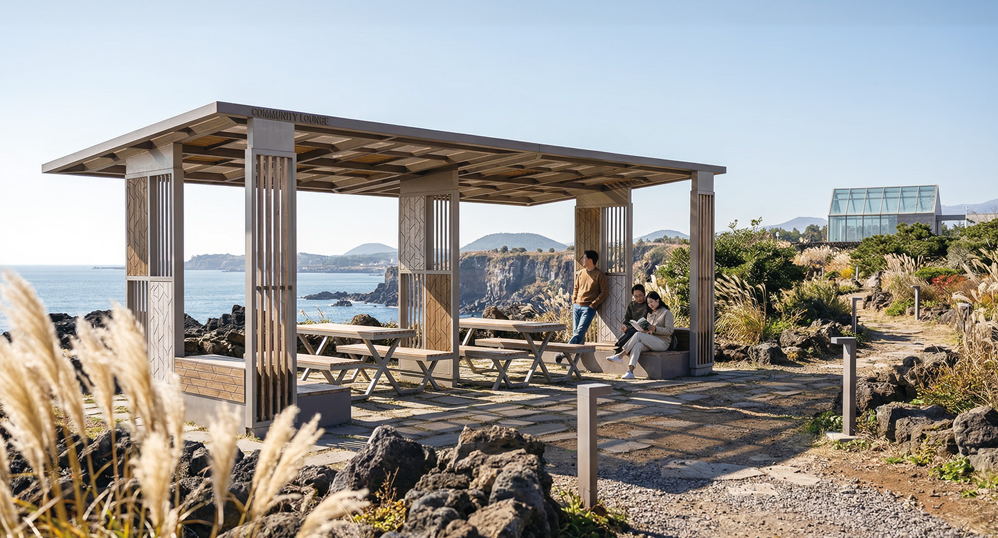 슬랫 라운지 홀 프라임(SLAT LOUNGE HALL PRIME)|DAUM-P-2710 제품목록으로 바로가기 자료 및 바로가기 나라장터 바로연결 도면 다운로드 시공사진 보러가기 기타 기둥의 빗살 무늬 패턴이 적용된 비스듬한 지붕 구조로, 시각적인 개방감과 통풍감을 살리며 공원과 단지 내에서 가볍게 머무는 모던한 쉘터 휴식 공간을 완성합니다. 제품명 슬랫 라운지 홀 프라임(SLAT LOUNGE HALL PRIME)|DAUM-P-2710 물품식별번호 25828423 규격 7,600 × 3,800 × 2,800(H) 재질 stl, galvanized, hard wood, polycarbonate, hpl 슬랫 라운지 홀 프라임(SLAT LOUNGE HALL PRIME)|DAUM-P-2710 물품식별번호 25828423 규격 7,600 × 3,800 × 2,800(H) 재질 stl, galvanized, hard wood, polycarbonate, hpl 기타 기둥의 빗살 무늬 패턴이 적용된 비스듬한 지붕 구조로, 시각적인 개방감과 통풍감을 살리며 공원과 단지 내에서 가볍게 머무는 모던한 쉘터 휴식 공간을 완성합니다. 자료 및 바로가기 나라장터 바로연결 도면 다운로드 시공사진 보러가기