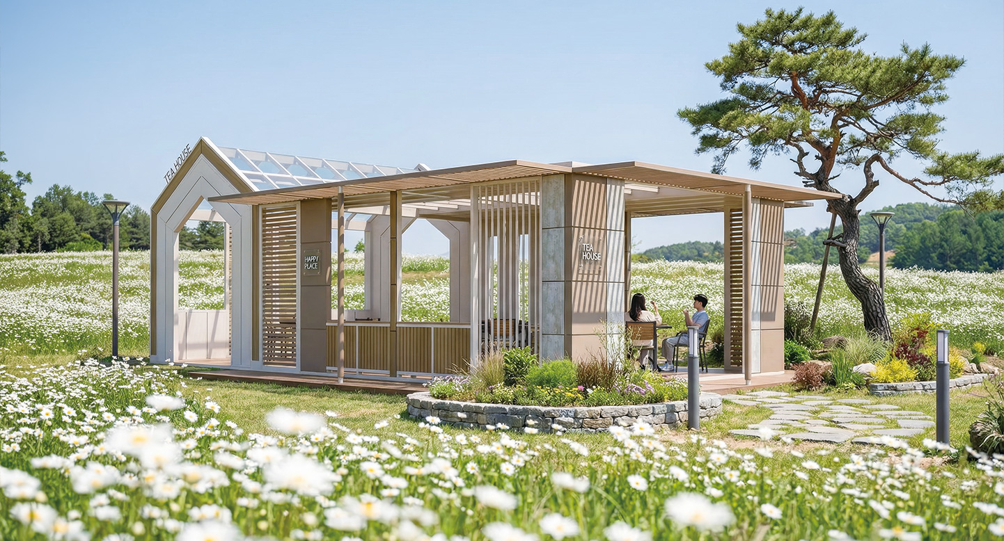 더 그랜드 코티지(THE GRAND COTTAGE)|DAUM-P-2742 제품목록으로 바로가기 자료 및 바로가기 나라장터 바로연결 도면 다운로드 시공사진 보러가기 기타 박공지붕의 클래식한 멋을 현대적인 건축 미학으로 승화시킨 하이엔드 가든 하우스입니다. 천창으로 쏟아지는 햇살과 넓은 데크가 어우러져, 마치 럭셔리한 숲속 별장에 온 듯한 프라이빗하고 안락한 휴식을 선사합니다. 제품명 더 그랜드 코티지(THE GRAND COTTAGE)|DAUM-P-2742 물품식별번호 25939138 규격 10,000 × 5,500 × 4,000(H) 재질 stl, galvanized, hard wood, polycarbonate, hpl 더 그랜드 코티지(THE GRAND COTTAGE)|DAUM-P-2742 물품식별번호 25939138 규격 10,000 × 5,500 × 4,000(H) 재질 stl, galvanized, hard wood, polycarbonate, hpl 기타 박공지붕의 클래식한 멋을 현대적인 건축 미학으로 승화시킨 하이엔드 가든 하우스입니다. 천창으로 쏟아지는 햇살과 넓은 데크가 어우러져, 마치 럭셔리한 숲속 별장에 온 듯한 프라이빗하고 안락한 휴식을 선사합니다. 자료 및 바로가기 나라장터 바로연결 도면 다운로드 시공사진 보러가기