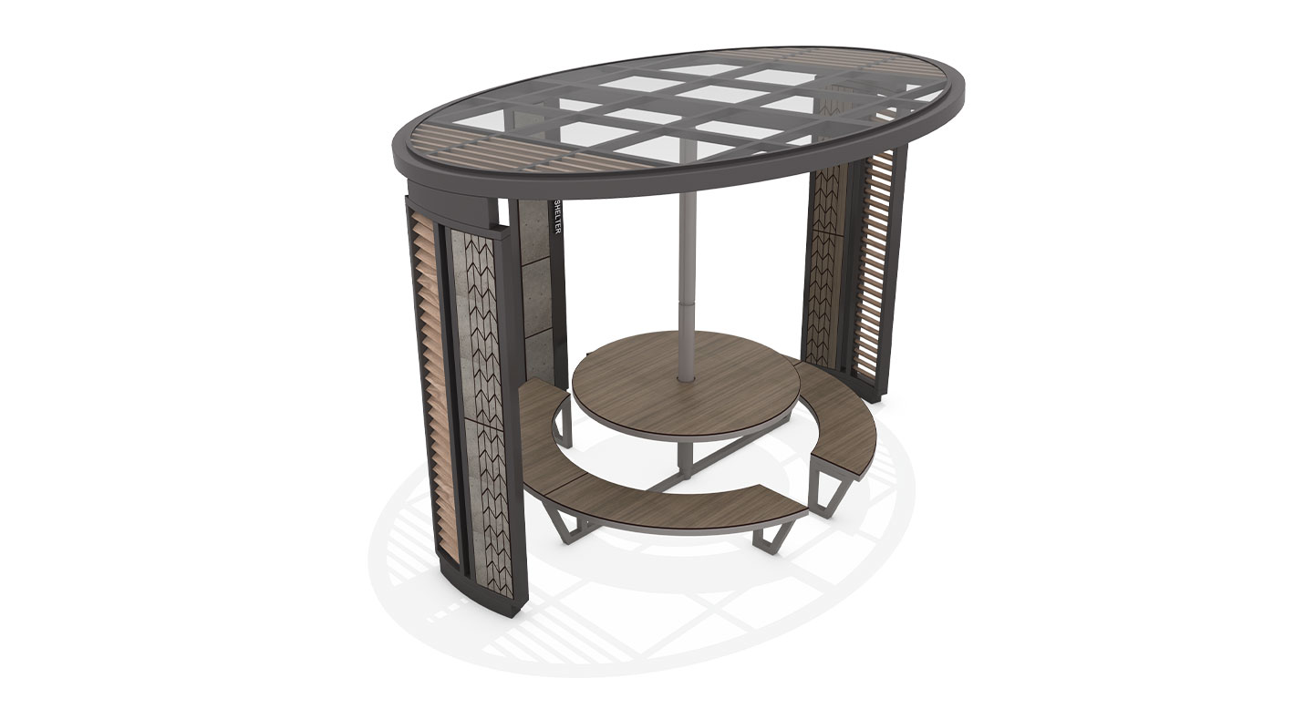 헤링본 라운드 플러스(Herringbone Round Plus)|DAUM-P-339 제품목록으로 바로가기 자료 및 바로가기 나라장터 바로연결 도면 다운로드 시공사진 보러가기 기타 헤링본 패턴이 돋보이는 기둥 디자인에 휴게 기능을 더했습니다. 테이블과 벤치가 짜임새 있게 배치되어, 마치 야외 갤러리의 카페테리아에 앉아 있는 듯한 감각적인 휴식을 제공합니다. 제품명 헤링본 라운드 플러스(Herringbone Round Plus)|DAUM-P-339 물품식별번호 25828434 규격 4,000 × 3,200 × 2,940(H) 재질 stl, hard wood, galvanized, polycarbonate 헤링본 라운드 플러스(Herringbone Round Plus)|DAUM-P-339 물품식별번호 25828434 규격 4,000 × 3,200 × 2,940(H) 재질 stl, hard wood, galvanized, polycarbonate 기타 헤링본 패턴이 돋보이는 기둥 디자인에 휴게 기능을 더했습니다. 테이블과 벤치가 짜임새 있게 배치되어, 마치 야외 갤러리의 카페테리아에 앉아 있는 듯한 감각적인 휴식을 제공합니다. 자료 및 바로가기 나라장터 바로연결 도면 다운로드 시공사진 보러가기