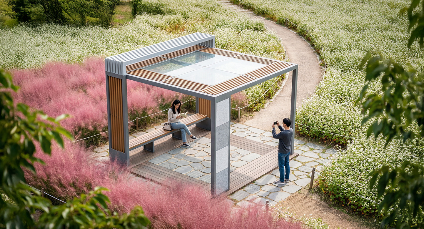 메트로 스퀘어 플러스(METRO SQUARE PLUS)|DAUM-P-1108 제품목록으로 바로가기 자료 및 바로가기 나라장터 바로연결 도면 다운로드 시공사진 보러가기 기타 기둥 전면의 감각적인 석재 패턴 패널과 정갈한 수직 루버가 어우러져 중후하고 세련된 도시미를 완성합니다. 배면의 화이트 루버 스크린과 일체형 벤치를 결합한 개방형 구조를 통해, 단지 내 공간에 쾌적하고 품격 있는 커뮤니티 휴식처를 제공합니다. 제품명 메트로 스퀘어 플러스(METRO SQUARE PLUS)|DAUM-P-1108 물품식별번호 25017949 규격 3,800 X 3,800 X 2,850(H) 재질 stl, galvanized, hard wood, polycarbonate 메트로 스퀘어 플러스(METRO SQUARE PLUS)|DAUM-P-1108 물품식별번호 25017949 규격 3,800 X 3,800 X 2,850(H) 재질 stl, galvanized, hard wood, polycarbonate 기타 기둥 전면의 감각적인 석재 패턴 패널과 정갈한 수직 루버가 어우러져 중후하고 세련된 도시미를 완성합니다. 배면의 화이트 루버 스크린과 일체형 벤치를 결합한 개방형 구조를 통해, 단지 내 공간에 쾌적하고 품격 있는 커뮤니티 휴식처를 제공합니다. 자료 및 바로가기 나라장터 바로연결 도면 다운로드 시공사진 보러가기