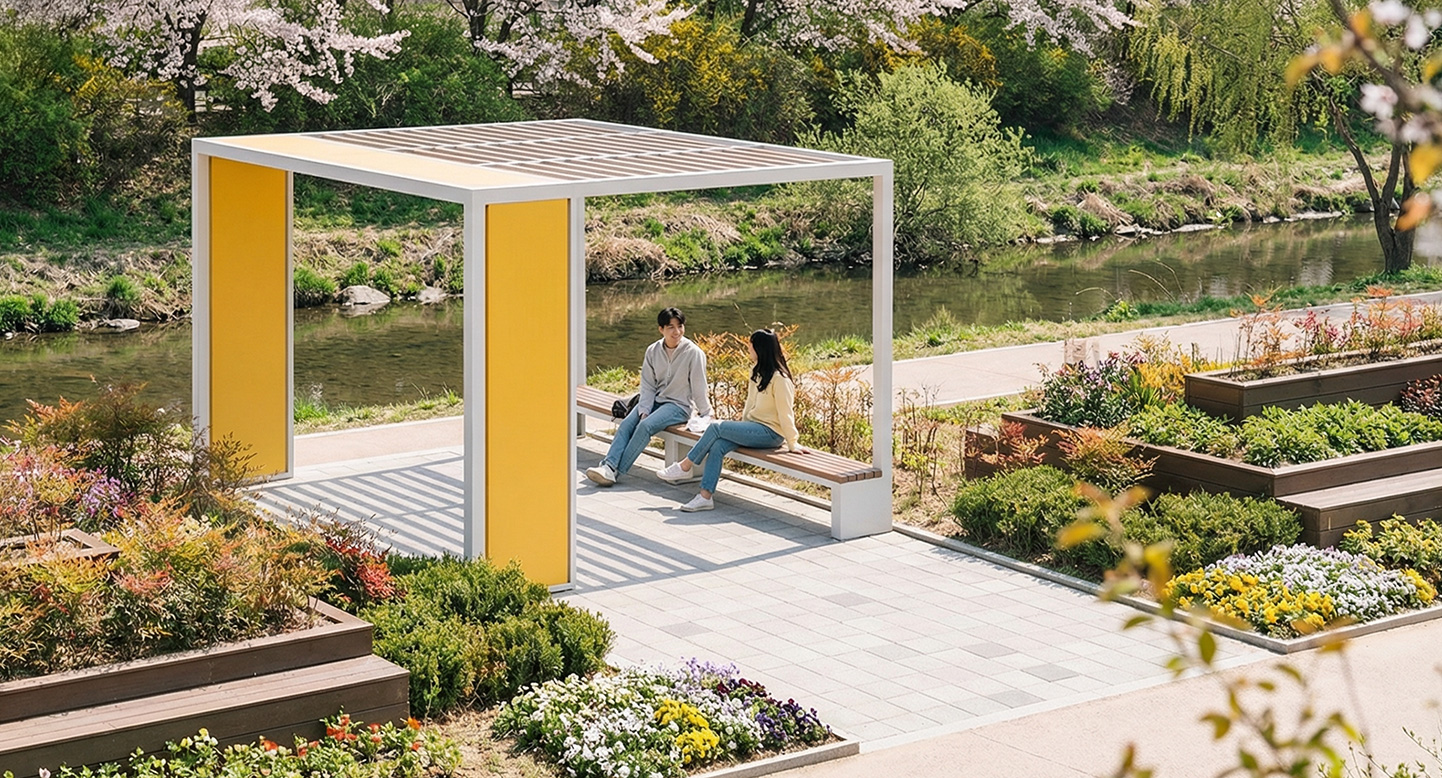 옐로우 게이트 플러스(YELLOW GATE PLUS)|DAUM-P-1160 제품목록으로 바로가기 자료 및 바로가기 나라장터 바로연결 도면 다운로드 시공사진 보러가기 기타 전면의 와이드한 옐로우 컬러 월 프레임이 입구와 같은 상징성을 부여하며 공간에 생동감을 불어넣습니다. 화이트 컬러의 정갈한 사각 프레임과 내부의 일체형 광폭 벤치를 통해 단지 내 공간에 세련되고 개방감 넘치는 프리미엄 쉼터를 제공합니다. 제품명 옐로우 게이트 플러스(YELLOW GATE PLUS)|DAUM-P-1160 물품식별번호 25018071 규격 3,800 X 3,800 X 2,700(H) 재질 stl, galvanized, hard wood, polycarbonate, hpl 옐로우 게이트 플러스(YELLOW GATE PLUS)|DAUM-P-1160 물품식별번호 25018071 규격 3,800 X 3,800 X 2,700(H) 재질 stl, galvanized, hard wood, polycarbonate, hpl 기타 전면의 와이드한 옐로우 컬러 월 프레임이 입구와 같은 상징성을 부여하며 공간에 생동감을 불어넣습니다. 화이트 컬러의 정갈한 사각 프레임과 내부의 일체형 광폭 벤치를 통해 단지 내 공간에 세련되고 개방감 넘치는 프리미엄 쉼터를 제공합니다. 자료 및 바로가기 나라장터 바로연결 도면 다운로드 시공사진 보러가기