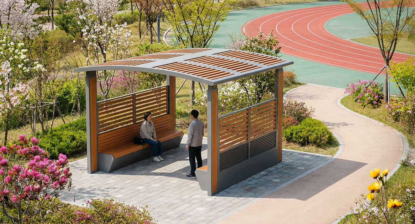 돔 스크린 플러스(DOME SCREEN PLUS)|DAUM-P-1141 제품목록으로 바로가기 자료 및 바로가기 나라장터 바로연결 도면 다운로드 시공사진 보러가기 기타 부드러운 곡선형 아치 루프와 직선형 수직 포스트가 조화를 이루어 모던하고 안정적인 실루엣을 완성합니다. 측면의 가로 루버 스크린과 내부에 설계된 대면형 벤치를 통해 단지 내 공간에 아늑하고 쾌적한 프리미엄 쉼터를 제공합니다. 제품명 돔 스크린 플러스(DOME SCREEN PLUS)|DAUM-P-1141 물품식별번호 25018045 규격 4,000 X 4,000 X 2,800(H) 재질 stl, galvanized, hard wood, polycarbonate, hpl 돔 스크린 플러스(DOME SCREEN PLUS)|DAUM-P-1141 물품식별번호 25018045 규격 4,000 X 4,000 X 2,800(H) 재질 stl, galvanized, hard wood, polycarbonate, hpl 기타 부드러운 곡선형 아치 루프와 직선형 수직 포스트가 조화를 이루어 모던하고 안정적인 실루엣을 완성합니다. 측면의 가로 루버 스크린과 내부에 설계된 대면형 벤치를 통해 단지 내 공간에 아늑하고 쾌적한 프리미엄 쉼터를 제공합니다. 자료 및 바로가기 나라장터 바로연결 도면 다운로드 시공사진 보러가기