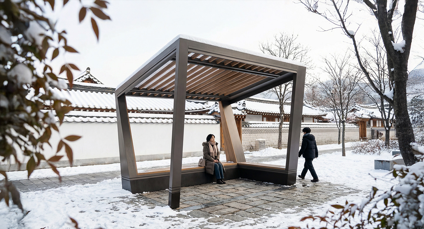 슬로프 메탈 플러스(SLOPE METAL PLUS)|DAUM-P-127 제품목록으로 바로가기 자료 및 바로가기 나라장터 바로연결 도면 다운로드 시공사진 보러가기 기타 사선형 프레임과 비대칭 실루엣이 역동적인 조형미를 선사합니다. 브론즈 메탈 프레임 내부에 광폭 평상과 루버 천장을 설계하여, 단지 내 공간에 독창적이고 안락한 프리미엄 휴식처를 제공합니다. 제품명 슬로프 메탈 플러스(SLOPE METAL PLUS)|DAUM-P-127 물품식별번호 23142049 규격 4,000 X 3,000 X 3,100(H) 재질 stl, galvanized, hard wood, polycarbonate 슬로프 메탈 플러스(SLOPE METAL PLUS)|DAUM-P-127 물품식별번호 23142049 규격 4,000 X 3,000 X 3,100(H) 재질 stl, galvanized, hard wood, polycarbonate 기타 사선형 프레임과 비대칭 실루엣이 역동적인 조형미를 선사합니다. 브론즈 메탈 프레임 내부에 광폭 평상과 루버 천장을 설계하여, 단지 내 공간에 독창적이고 안락한 프리미엄 휴식처를 제공합니다. 자료 및 바로가기 나라장터 바로연결 도면 다운로드 시공사진 보러가기
