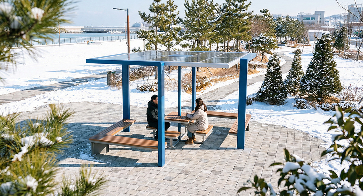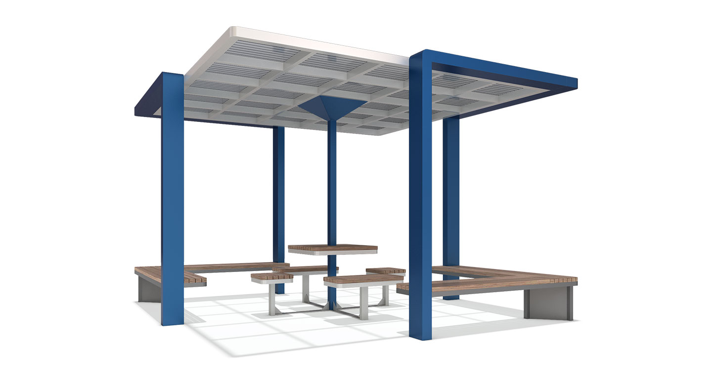 어반 블루 허브 플러스(URBAN BLUE HUB PLUS)|DAUM-P-1165 제품목록으로 바로가기 자료 및 바로가기 나라장터 바로연결 도면 다운로드 시공사진 보러가기 기타 선명한 블루 컬러의 슬림 프레임과 화이트 격자 루프가 대비를 이루어 현대적이고 청량한 조형미를 선사합니다. 내부에 설계된 일체형 중앙 테이블 세트와 'ㄱ'자형 배면 벤치를 통해 단지 내 공간에 생기 있는 소통과 여유로운 프리미엄 휴식처를 제공합니다. 제품명 어반 블루 허브 플러스(URBAN BLUE HUB PLUS)|DAUM-P-1165 물품식별번호 25018076 규격 3,800 X 3,800 X 2,500(H) 재질 stl, galvanized, hard wood, polycarbonate, hpl 어반 블루 허브 플러스(URBAN BLUE HUB PLUS)|DAUM-P-1165 물품식별번호 25018076 규격 3,800 X 3,800 X 2,500(H) 재질 stl, galvanized, hard wood, polycarbonate, hpl 기타 선명한 블루 컬러의 슬림 프레임과 화이트 격자 루프가 대비를 이루어 현대적이고 청량한 조형미를 선사합니다. 내부에 설계된 일체형 중앙 테이블 세트와 'ㄱ'자형 배면 벤치를 통해 단지 내 공간에 생기 있는 소통과 여유로운 프리미엄 휴식처를 제공합니다. 자료 및 바로가기 나라장터 바로연결 도면 다운로드 시공사진 보러가기