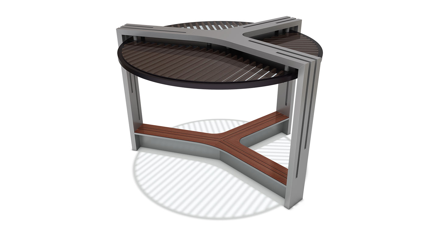 트리니티 라운드 플러스(Trinity Round Plus)|DAUM-P-308 제품목록으로 바로가기 자료 및 바로가기 나라장터 바로연결 도면 다운로드 시공사진 보러가기 기타 세 개의 프레임이 맞물려 지붕을 지지하는 트리니티 구조가 특징입니다. 삼각형 구도가 주는 균형미와 개방감이 뛰어나며, 조경 공간에 조각품처럼 어우러지는 예술적인 퍼걸러입니다. 제품명 트리니티 라운드 플러스(Trinity Round Plus)|DAUM-P-308 물품식별번호 23403982 규격 3,500 X 3,640 X 2,700(H) 재질 stl, hard wood, galvanized, polycarbonate, hpl 트리니티 라운드 플러스(Trinity Round Plus)|DAUM-P-308 물품식별번호 23403982 규격 3,500 X 3,640 X 2,700(H) 재질 stl, hard wood, galvanized, polycarbonate, hpl 기타 세 개의 프레임이 맞물려 지붕을 지지하는 트리니티 구조가 특징입니다. 삼각형 구도가 주는 균형미와 개방감이 뛰어나며, 조경 공간에 조각품처럼 어우러지는 예술적인 퍼걸러입니다. 자료 및 바로가기 나라장터 바로연결 도면 다운로드 시공사진 보러가기
