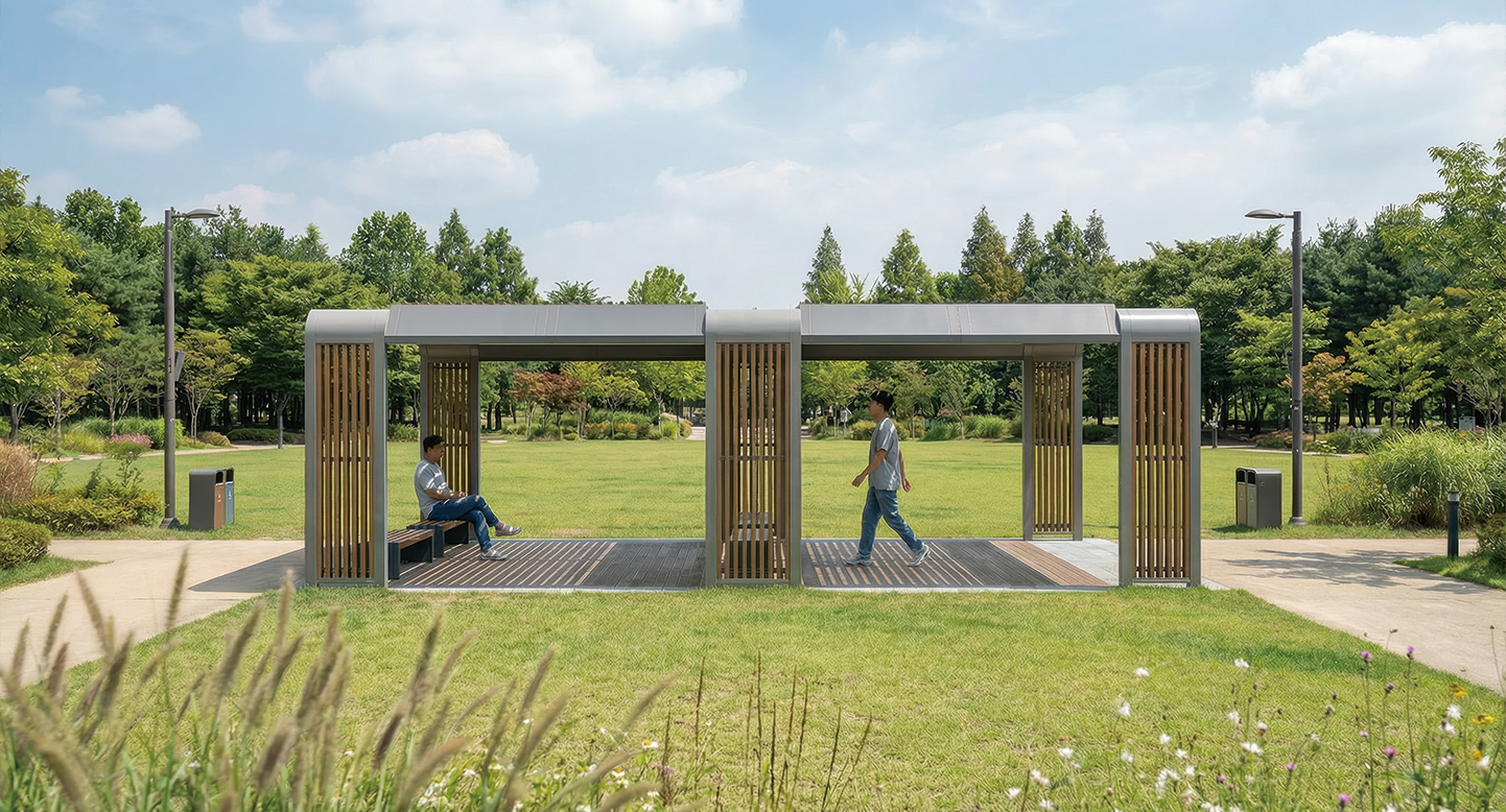 콤비네이션 홀(COMBINATION HALL)|DAUM-P-708 제품목록으로 바로가기 자료 및 바로가기 나라장터 바로연결 도면 다운로드 시공사진 보러가기 기타 볼륨감이 느껴지는 독특한 기둥 설계와 서로 다른 소재의 질감이 교차하는 변주를 통해 강력한 존재감을 드러내며, 건축적인 인상이 강한 주상복합 단지의 로비 앞이나 테마파크의 랜드마크 쉼터로 사용될 때 공간에 특별한 리듬감을 더해줍니다. 제품명 콤비네이션 홀(COMBINATION HALL)|DAUM-P-708 물품식별번호 23142286 규격 7,200 X 3,600 X 2,650(H) 재질 stl, galvanized, hard wood, polycarbonate, hpl 콤비네이션 홀(COMBINATION HALL)|DAUM-P-708 물품식별번호 23142286 규격 7,200 X 3,600 X 2,650(H) 재질 stl, galvanized, hard wood, polycarbonate, hpl 기타 볼륨감이 느껴지는 독특한 기둥 설계와 서로 다른 소재의 질감이 교차하는 변주를 통해 강력한 존재감을 드러내며, 건축적인 인상이 강한 주상복합 단지의 로비 앞이나 테마파크의 랜드마크 쉼터로 사용될 때 공간에 특별한 리듬감을 더해줍니다. 자료 및 바로가기 나라장터 바로연결 도면 다운로드 시공사진 보러가기