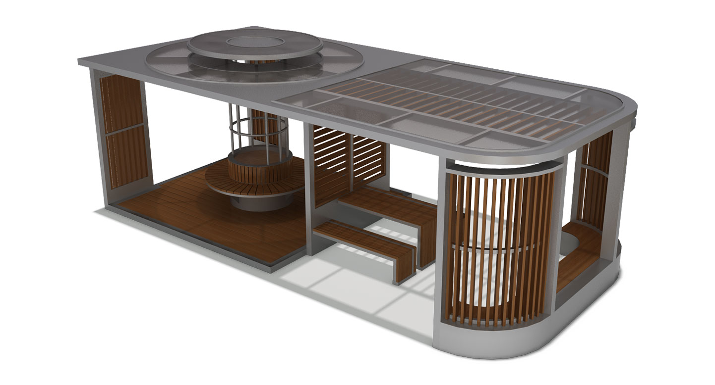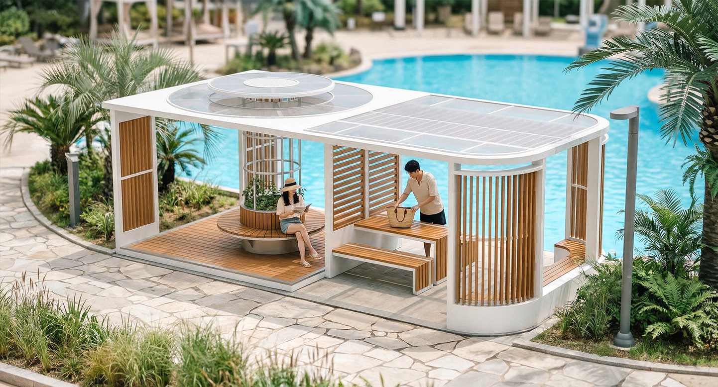 서클 루버 벤치 홀 프라임 (CIRCLE LOUVER BENCH HALL PRIME)|DAUM-P-747A 제품목록으로 바로가기 자료 및 바로가기 나라장터 바로연결 도면 다운로드 시공사진 보러가기 기타 내부의 상징적인 원형 좌식 공간과 외부의 직선형 루버 파티션이 입체적으로 어우러진 모델입니다. 개방형 프레임 내부에 다양한 형태의 벤치와 데크를 배치하여, 단지 내 광장에서 다채로운 휴식과 소통이 가능한 복합 커뮤니티 거점을 제공합니다. 제품명 서클 루버 벤치 홀 프라임 (CIRCLE LOUVER BENCH HALL PRIME)|DAUM-P-747A 물품식별번호 25029074 규격 8,000 X 4,000 X 2,910(H) 재질 stl, galvanized, hard wood, hpl, polycarbonate 서클 루버 벤치 홀 프라임 (CIRCLE LOUVER BENCH HALL PRIME)|DAUM-P-747A 물품식별번호 25029074 규격 8,000 X 4,000 X 2,910(H) 재질 stl, galvanized, hard wood, hpl, polycarbonate 기타 내부의 상징적인 원형 좌식 공간과 외부의 직선형 루버 파티션이 입체적으로 어우러진 모델입니다. 개방형 프레임 내부에 다양한 형태의 벤치와 데크를 배치하여, 단지 내 광장에서 다채로운 휴식과 소통이 가능한 복합 커뮤니티 거점을 제공합니다. 자료 및 바로가기 나라장터 바로연결 도면 다운로드 시공사진 보러가기