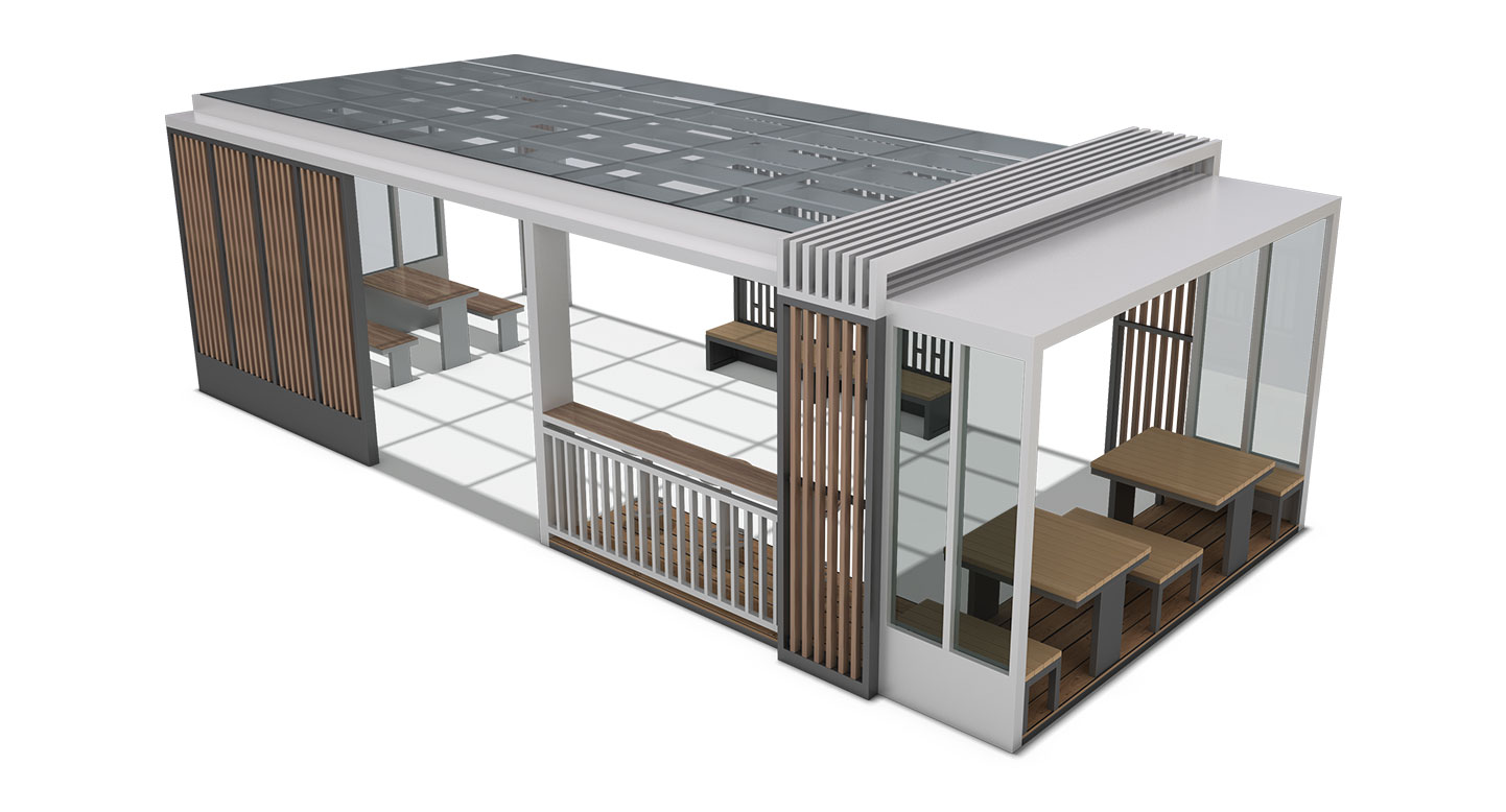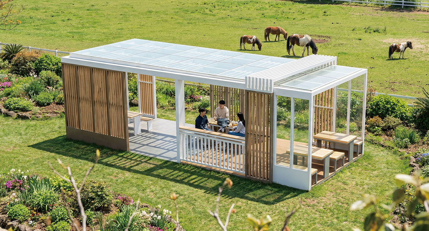 카페아일랜드 홀 프라임(CAFE-ISLAND HALL PRIME)|DAUM-P-785 제품목록으로 바로가기 자료 및 바로가기 나라장터 바로연결 도면 다운로드 시공사진 보러가기 기타 순백의 화이트 프레임과 바(Bar) 테이블이 결합된 세련된 디자인입니다. 투명한 천장과 폴리카보네이트 파티션이 공간을 화사하게 밝혀주며, 마치 트렌디한 루프탑 카페에서 차 한 잔의 여유를 즐기는 듯한 감성 테라스 쉼터입니다. 제품명 카페아일랜드 홀 프라임(CAFE-ISLAND HALL PRIME)|DAUM-P-785 물품식별번호 25022603 규격 9,000 X 4,200 X 2,850(H) 재질 stl, galvanized, hard wood, polycarbonate, hpl 카페아일랜드 홀 프라임(CAFE-ISLAND HALL PRIME)|DAUM-P-785 물품식별번호 25022603 규격 9,000 X 4,200 X 2,850(H) 재질 stl, galvanized, hard wood, polycarbonate, hpl 기타 순백의 화이트 프레임과 바(Bar) 테이블이 결합된 세련된 디자인입니다. 투명한 천장과 폴리카보네이트 파티션이 공간을 화사하게 밝혀주며, 마치 트렌디한 루프탑 카페에서 차 한 잔의 여유를 즐기는 듯한 감성 테라스 쉼터입니다. 자료 및 바로가기 나라장터 바로연결 도면 다운로드 시공사진 보러가기