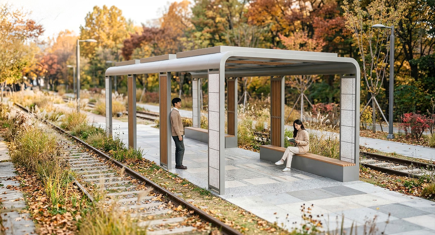스톤 루버 라운드 홀 프라임 (STONE LOUVER ROUND HALL PRIME)|DAUM-P-783A 제품목록으로 바로가기 자료 및 바로가기 나라장터 바로연결 도면 다운로드 시공사진 보러가기 기타 부드러운 라운드 프레임과 매시브한 석재 패턴 패널이 어우러져 웅장하고 품격 있는 경관을 연출합니다. 수직 루버 포인트와 안락한 월 벤치를 조화롭게 배치하여 단지 내 메인 광장에 최적화된 고품격 복합 휴게 공간을 제공합니다. 제품명 스톤 루버 라운드 홀 프라임 (STONE LOUVER ROUND HALL PRIME)|DAUM-P-783A 물품식별번호 25022422 규격 9,900 X 3,600 X 2,900(H) 재질 stl, galvanized, hard wood, polycarbonate, hpl 스톤 루버 라운드 홀 프라임 (STONE LOUVER ROUND HALL PRIME)|DAUM-P-783A 물품식별번호 25022422 규격 9,900 X 3,600 X 2,900(H) 재질 stl, galvanized, hard wood, polycarbonate, hpl 기타 부드러운 라운드 프레임과 매시브한 석재 패턴 패널이 어우러져 웅장하고 품격 있는 경관을 연출합니다. 수직 루버 포인트와 안락한 월 벤치를 조화롭게 배치하여 단지 내 메인 광장에 최적화된 고품격 복합 휴게 공간을 제공합니다. 자료 및 바로가기 나라장터 바로연결 도면 다운로드 시공사진 보러가기