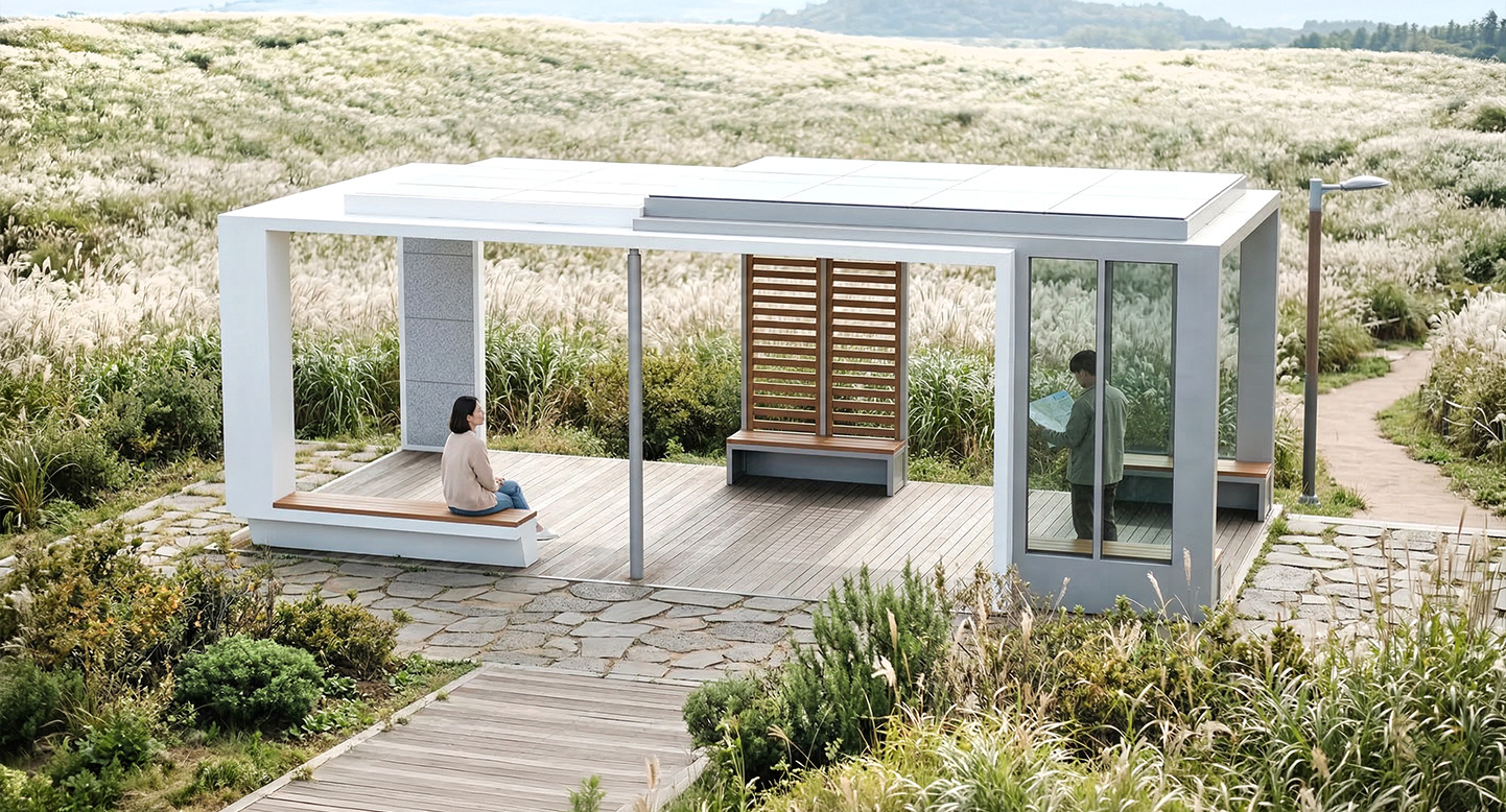 화이트 라운드 벤치 홀 프라임 (WHITE ROUND BENCH HALL PRIME)|DAUM-P-778 제품목록으로 바로가기 자료 및 바로가기 나라장터 바로연결 도면 다운로드 시공사진 보러가기 기타 부드러운 곡선의 화이트 라운드 프레임과 견고한 그레이 매스가 조화를 이룬 현대적 감각의 모델입니다. 내부에 독립형 벤치와 월 스크린을 효율적으로 배치하여, 단지 내 광장이나 산책로 어디서든 안락하게 머물 수 있는 고품격 복합 휴게 공간을 제공합니다. 제품명 화이트 라운드 벤치 홀 프라임 (WHITE ROUND BENCH HALL PRIME)|DAUM-P-778 물품식별번호 25022289 규격 8,000 X 3,800 X 2,850(H) 재질 stl, galvanized, hard wood, polycarbonate, hpl 화이트 라운드 벤치 홀 프라임 (WHITE ROUND BENCH HALL PRIME)|DAUM-P-778 물품식별번호 25022289 규격 8,000 X 3,800 X 2,850(H) 재질 stl, galvanized, hard wood, polycarbonate, hpl 기타 부드러운 곡선의 화이트 라운드 프레임과 견고한 그레이 매스가 조화를 이룬 현대적 감각의 모델입니다. 내부에 독립형 벤치와 월 스크린을 효율적으로 배치하여, 단지 내 광장이나 산책로 어디서든 안락하게 머물 수 있는 고품격 복합 휴게 공간을 제공합니다. 자료 및 바로가기 나라장터 바로연결 도면 다운로드 시공사진 보러가기
