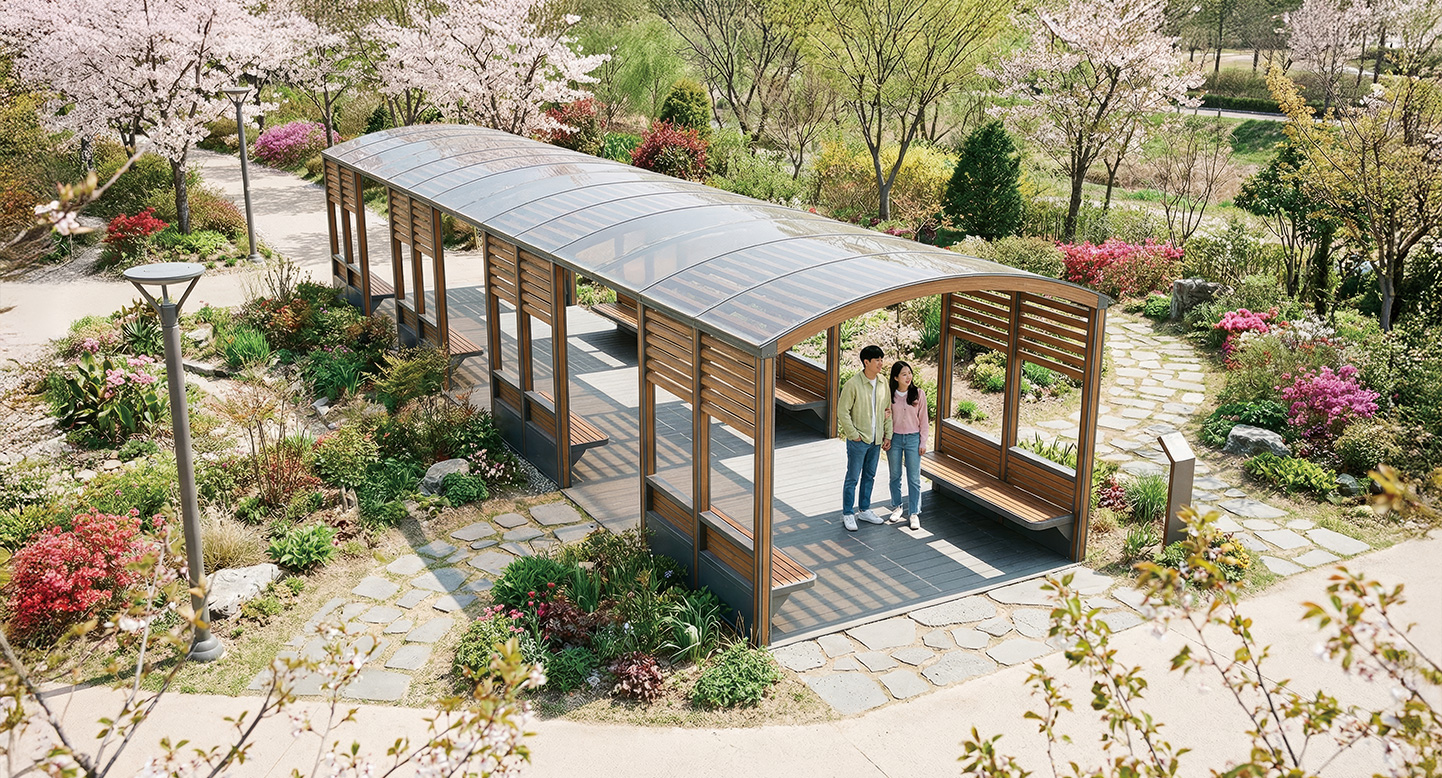 아치프로미나드 홀 프라임(ARCH-PROMENADE HALL PRIME)|DAUM-P-152A-2 제품목록으로 바로가기 자료 및 바로가기 나라장터 바로연결 도면 다운로드 시공사진 보러가기 기타 부드러운 곡선형 지붕이 길게 뻗어 있는 아케이드 디자인이 돋보입니다. 메탈 프레임 사이의 우드 루버가 리듬감을 더하며, 비나 햇빛을 피해 쾌적하게 이동하거나 잠시 머무를 수 있는 스트리트형 커뮤니티 쉘터입니다. 제품명 아치프로미나드 홀 프라임(ARCH-PROMENADE HALL PRIME)|DAUM-P-152A-2 물품식별번호 25024862 규격 11,600 X 3,000 X 2,500(H) 재질 stl, hard wood, polycarbonate 아치프로미나드 홀 프라임(ARCH-PROMENADE HALL PRIME)|DAUM-P-152A-2 물품식별번호 25024862 규격 11,600 X 3,000 X 2,500(H) 재질 stl, hard wood, polycarbonate 기타 부드러운 곡선형 지붕이 길게 뻗어 있는 아케이드 디자인이 돋보입니다. 메탈 프레임 사이의 우드 루버가 리듬감을 더하며, 비나 햇빛을 피해 쾌적하게 이동하거나 잠시 머무를 수 있는 스트리트형 커뮤니티 쉘터입니다. 자료 및 바로가기 나라장터 바로연결 도면 다운로드 시공사진 보러가기