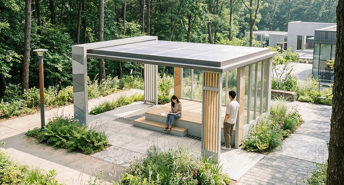 스톤 글라스 데크 홀 프라임(STONE GLASS DECK HALL PRIME)|DAUM-P-737 제품목록으로 바로가기 자료 및 바로가기 나라장터 바로연결 도면 다운로드 시공사진 보러가기 기타 석재 패턴의 웅장한 포스트와 강화유리 스크린이 조화를 이루어 현대적이고 아늑한 라운지 분위기를 선사합니다. 루프 아래 넓은 평상형 데크를 배치하여 외부 시선을 차단하면서도 탁월한 개방감을 유지하는 프리미엄 복합 휴게 공간을 제공합니다. 제품명 스톤 글라스 데크 홀 프라임(STONE GLASS DECK HALL PRIME)|DAUM-P-737 물품식별번호 23469144 규격 6,000 X 4,000 X 2,800(H) 재질 stl, galvanized, hard wood, hpl, tempered glass, pc 스톤 글라스 데크 홀 프라임(STONE GLASS DECK HALL PRIME)|DAUM-P-737 물품식별번호 23469144 규격 6,000 X 4,000 X 2,800(H) 재질 stl, galvanized, hard wood, hpl, tempered glass, pc 기타 석재 패턴의 웅장한 포스트와 강화유리 스크린이 조화를 이루어 현대적이고 아늑한 라운지 분위기를 선사합니다. 루프 아래 넓은 평상형 데크를 배치하여 외부 시선을 차단하면서도 탁월한 개방감을 유지하는 프리미엄 복합 휴게 공간을 제공합니다. 자료 및 바로가기 나라장터 바로연결 도면 다운로드 시공사진 보러가기