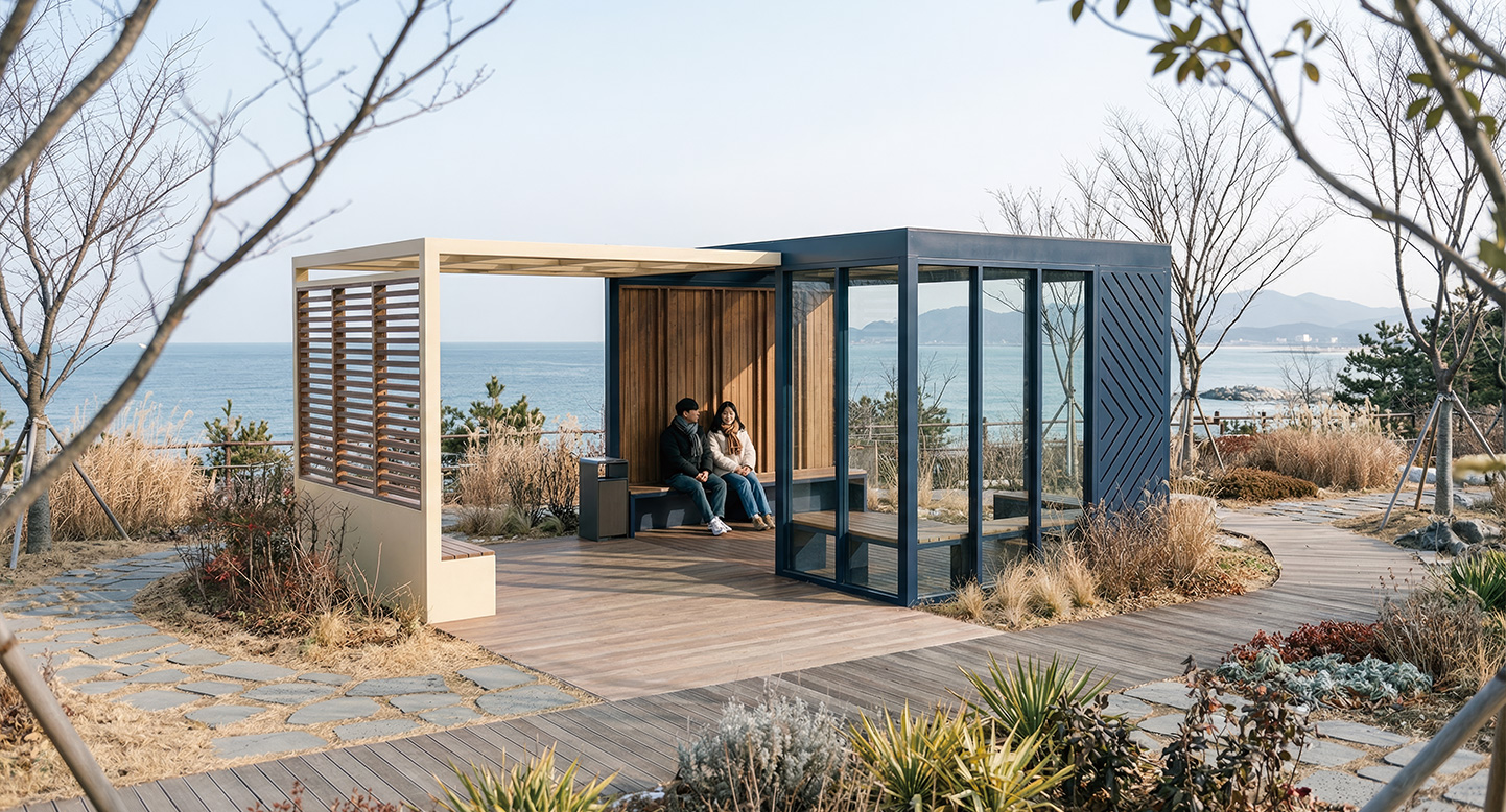 듀얼블록 홀 프라임(DUAL-BLOCK HALL PRIME)|DAUM-P-1742 제품목록으로 바로가기 자료 및 바로가기 나라장터 바로연결 도면 다운로드 시공사진 보러가기 기타 산뜻한 옐로우 오픈 공간과 차분한 네이비 글라스 룸이 결합된 독창적인 듀얼 구조입니다. 날씨와 용도에 따라 야외와 실내 느낌을 선택하여 즐길 수 있으며, 선명한 컬러 대비가 시선을 끄는 다목적 커뮤니티 공간입니다. 제품명 듀얼블록 홀 프라임(DUAL-BLOCK HALL PRIME)|DAUM-P-1742 물품식별번호 25023812 규격 6,000 X 4,500 X 2,700(H) 재질 stl, galvanized, hard wood, polycarbonate 듀얼블록 홀 프라임(DUAL-BLOCK HALL PRIME)|DAUM-P-1742 물품식별번호 25023812 규격 6,000 X 4,500 X 2,700(H) 재질 stl, galvanized, hard wood, polycarbonate 기타 산뜻한 옐로우 오픈 공간과 차분한 네이비 글라스 룸이 결합된 독창적인 듀얼 구조입니다. 날씨와 용도에 따라 야외와 실내 느낌을 선택하여 즐길 수 있으며, 선명한 컬러 대비가 시선을 끄는 다목적 커뮤니티 공간입니다. 자료 및 바로가기 나라장터 바로연결 도면 다운로드 시공사진 보러가기